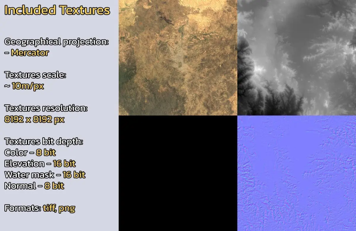 - Textures resolution: ~10m/px