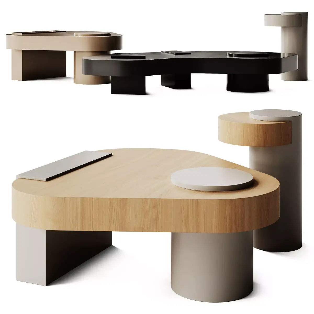 Sancal Bold Metal and Wooden high side tablesDimensions:L.100 x W.100 x H.43 cm.L.38x W.35 x H.60 cm.