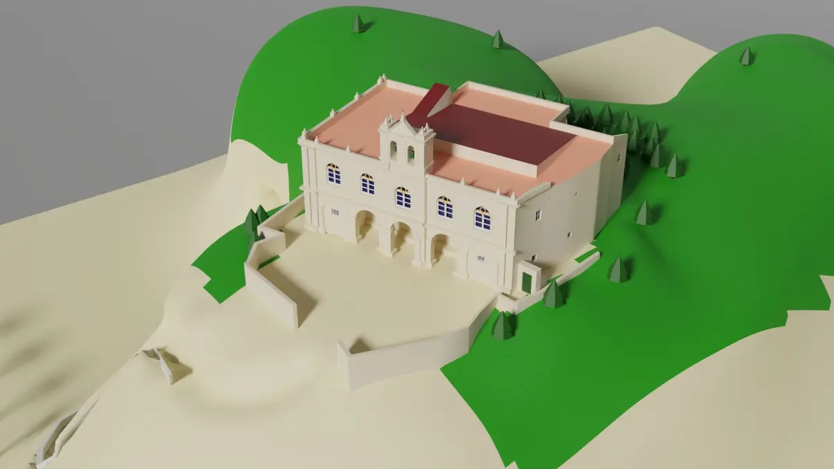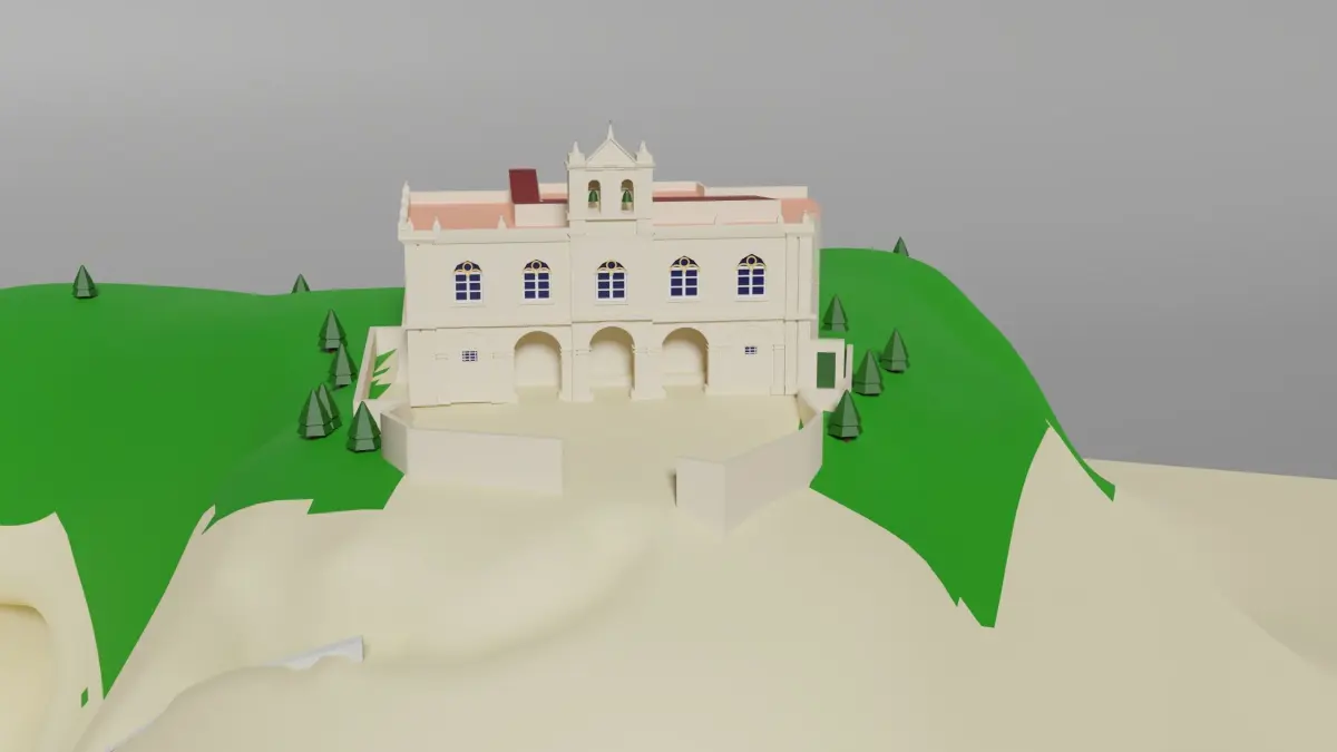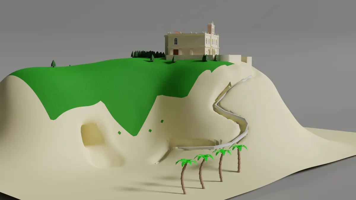 3d model of a sanctuary on a rock made in Blender v. 2.92 and rendered in cycles