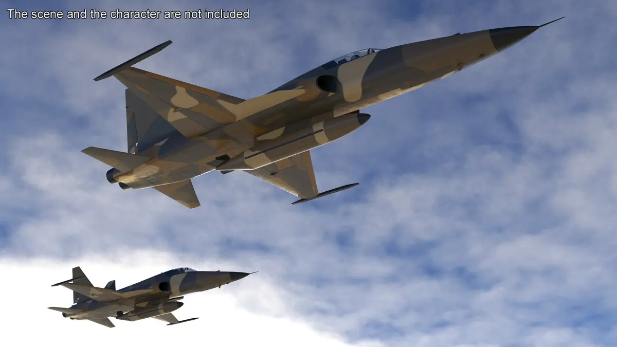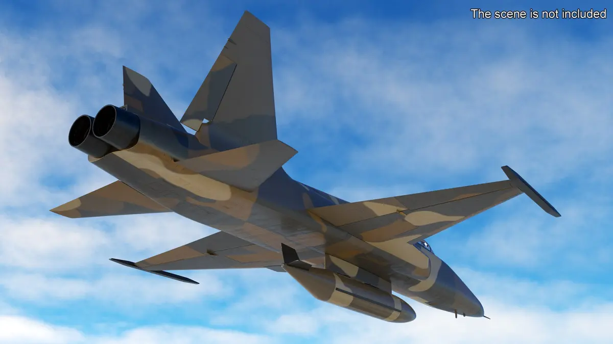 Sand Camouflaged Military Fighter Jet Rigged for Cinema 4D is a 3d model of a combat aircraft optimized for desert operations, featuring a realistic sand-tone camouflage pattern and fully rigged for animation.