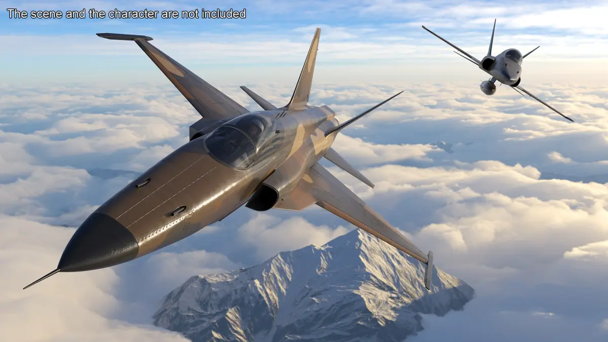 For military training simulations, aerospace engineering projects, flight dynamics visualization, desert warfare scenarios, virtual reality experiences, augmented reality displays, combat strategy planning, defense promotional materials, aviation-themed media, museum exhibitions, and interactive education projects.