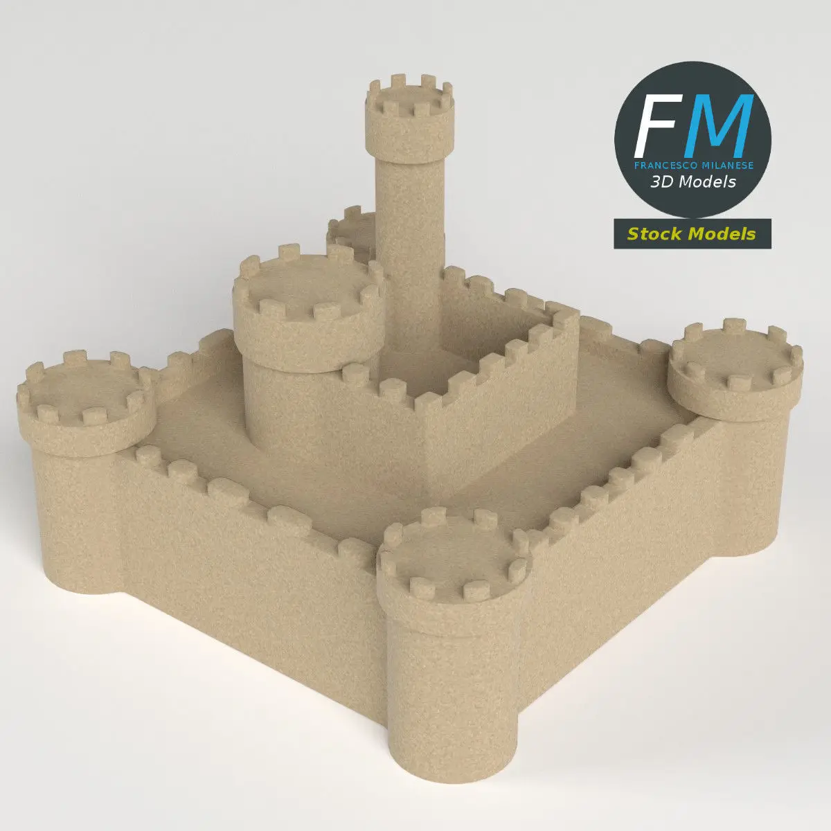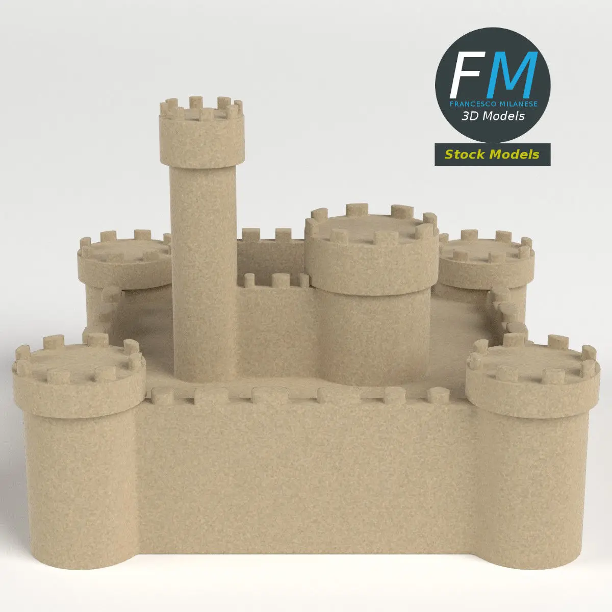 Sand castle 3D Model, nr. 2 in my collection. Production-ready 3D Model, with PBR materials, textures, non overlapping UV Layout map provided in the package.Quads only geometries (no tris/ngons), no poles.Easily customizable: UV unwrapped geometries, so you can create new Textures (or modify the existing ones) using the UV Layout maps provided in the package (as png with alpha).Each Object, Material or Texture provided in the package has a unique, meaningful name.Made in Blender 3D 2.79 (Cycles materials) then exported to OBJ and FBX; materials and textures made in Substance Painter, exported for PBR, V-Ray, Unity, Unreal.PROMO IMAGES: the first image has been rendered in Cycles for Blender 3D 2.7x; in particular, you can find 11+ promo images in this description: