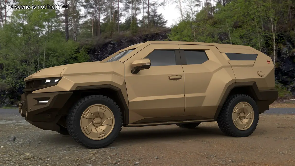 Sand Colored SUV Rezvani Vengeance Simplified is a high quality, photo real 3d model that will enhance detail and realism to any of your rendering projects. The model has a fully textured, detailed design that allows for close-up renders, and was originally modeled in 3ds Max 2020 and rendered with V-Ray. Renders have no postprocessing!