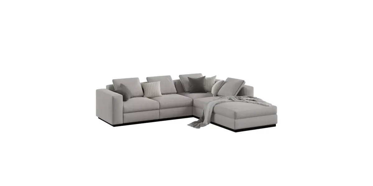 This 3D model has a detailed design of an L-shaped sofa. This 3D model of a sofa includes cushions and a blanket for added realism. It has a light sand color that fits well in various interior styles. The 3D model is ideal for interior visualization projects.Key Features:This is a seating object in the style of an L-shaped sofa.