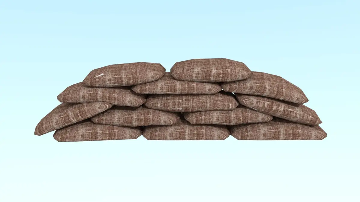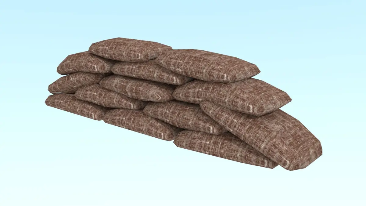 The model is a sandbags construction, wich you can change, because it is made up of separate bags.The modelis lowpoly(I also use decimate modificator) and specialized for indie project.Trips: 1268Polygons:779Verts:660