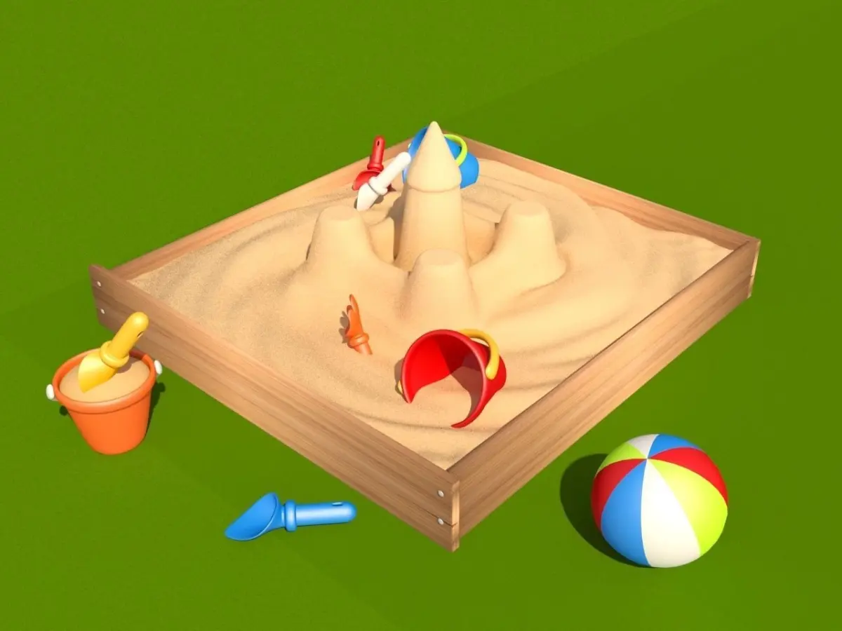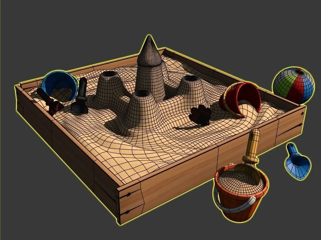 Sandbox with Sand Castle modeled in 3D Studio Max 2016. Standard Materials only.