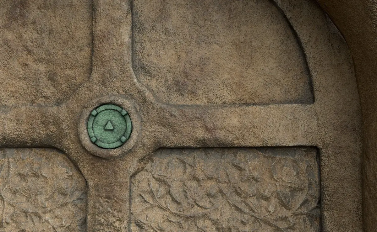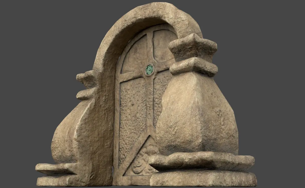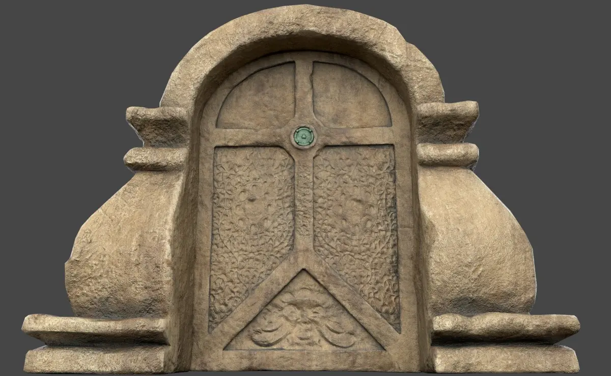 Low-Poly SandStone Door with ornaments.