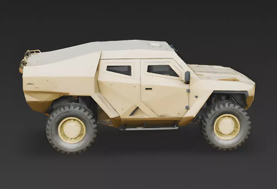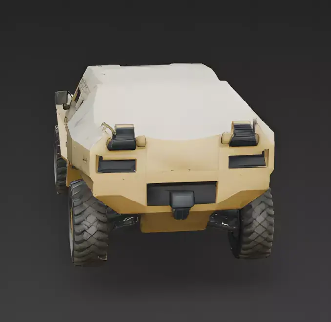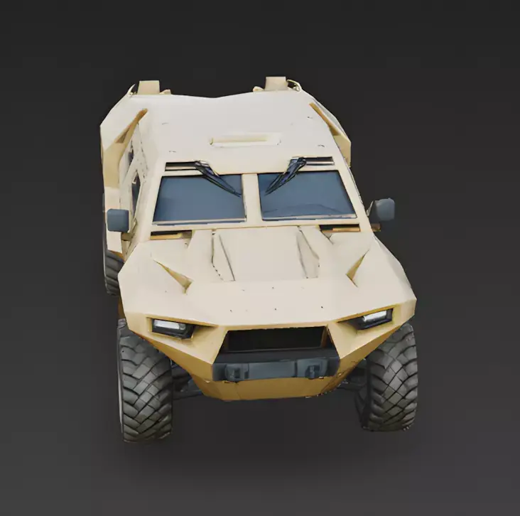 Geometric Stealth Armor The vehicle's body is defined by sharp, angular planes and faceted surfaces. Similar to a stealth fighter jet or the Tesla Cybertruck, this low-poly style geometry is designed to deflect radar waves and ballistic impacts, giving it a distinct, aggressive silhouette.