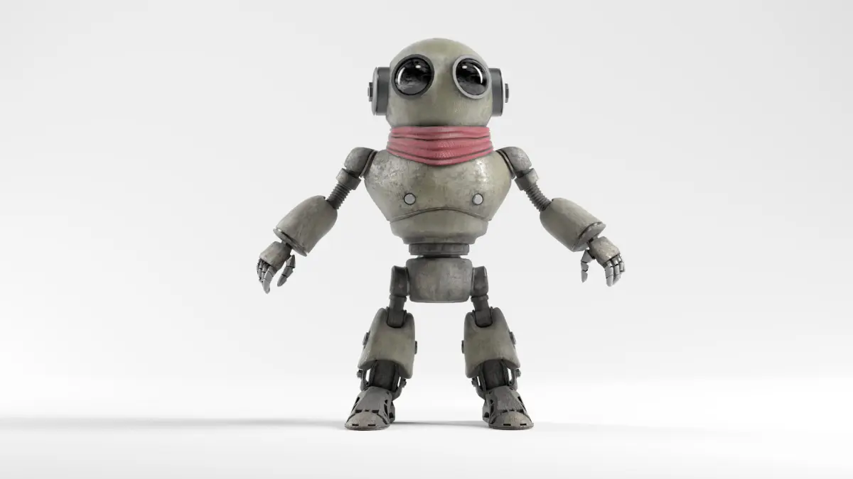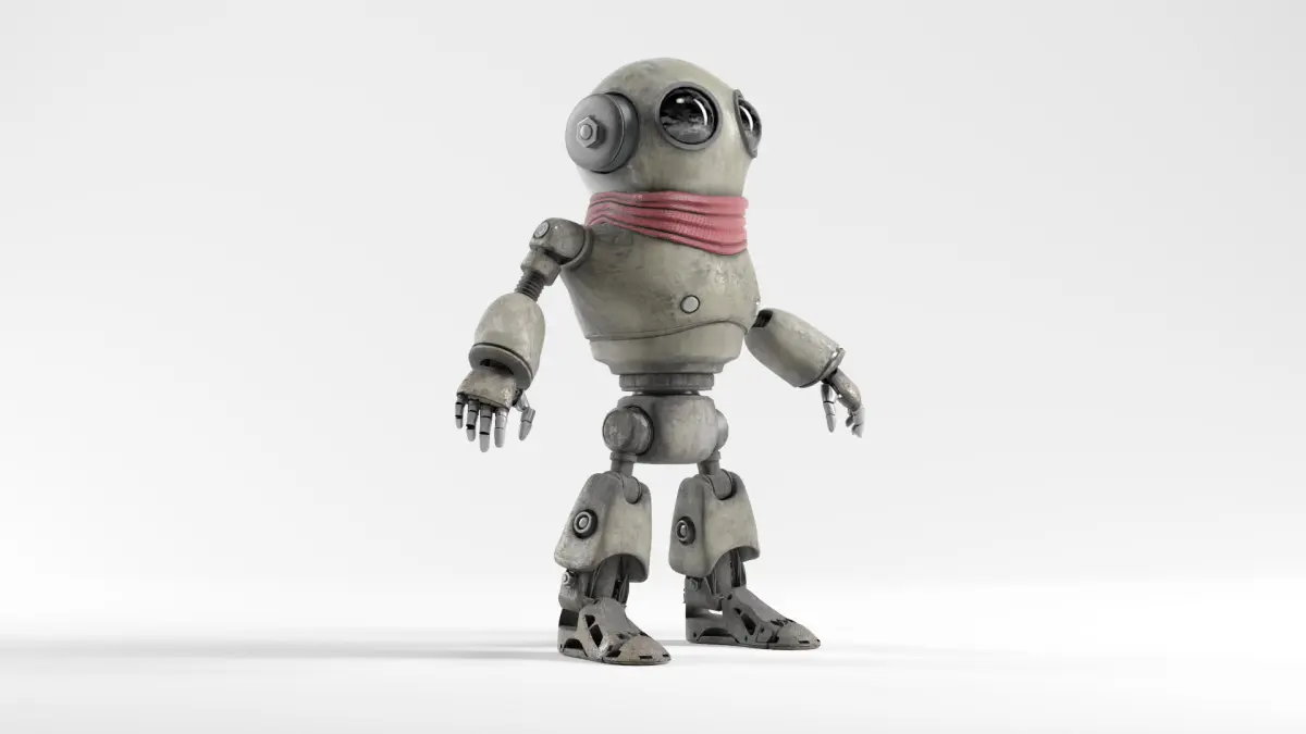 This is a stylized retro robot character designed for games, animation, and cinematic projects. The model has a friendly and charming look, ideal for sci-fi and cartoon-style environments.