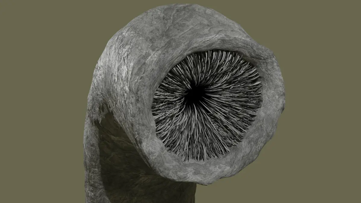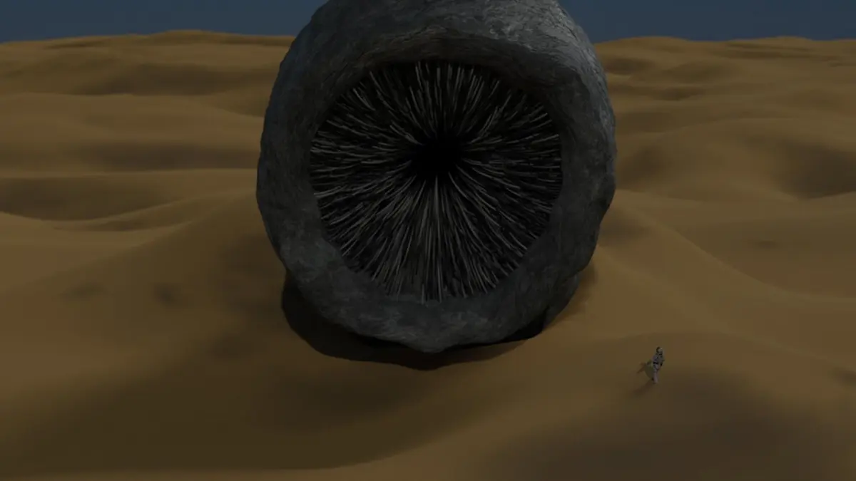 DISCLAIMER: Nothing other than the worm is included in the First,third or fourth render, I just wanted to share how I used the model in my own project. The dunes I used in it are for sale on my page though.Sandworm rigged character based on the new movie Dune.The worm is rigged and ready to animate.The rig uses Inverse kinematics which makes the whole body easier to adjust. There are IK controls for the head and middle of the worm.You can also animate the mouth opening and closing with a mouth controller.The teeth were made with a particle system and a curve.The skin is made with a stone texture downloaded for free from the internet, it includes the color, displacement, normal map and roughness.File types include: Blend, obj, FBX, glb, stl, ply, x3d