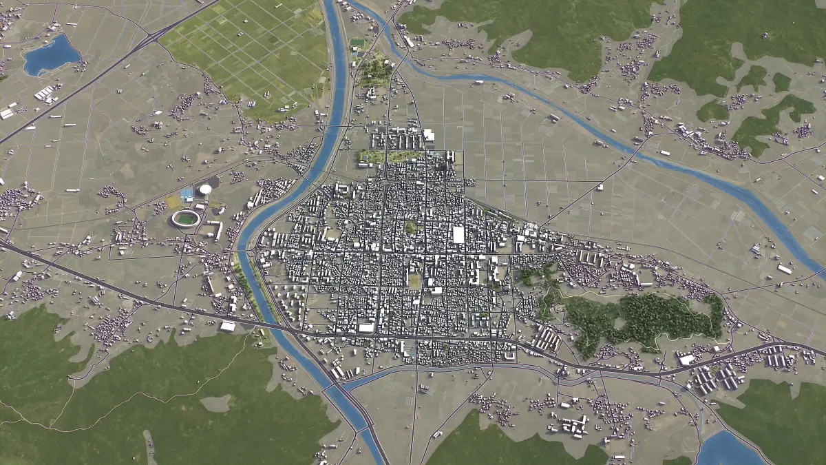 - Full city extents up to 100 x 100 km — or crop to an area of interest for better format compability and scene performance