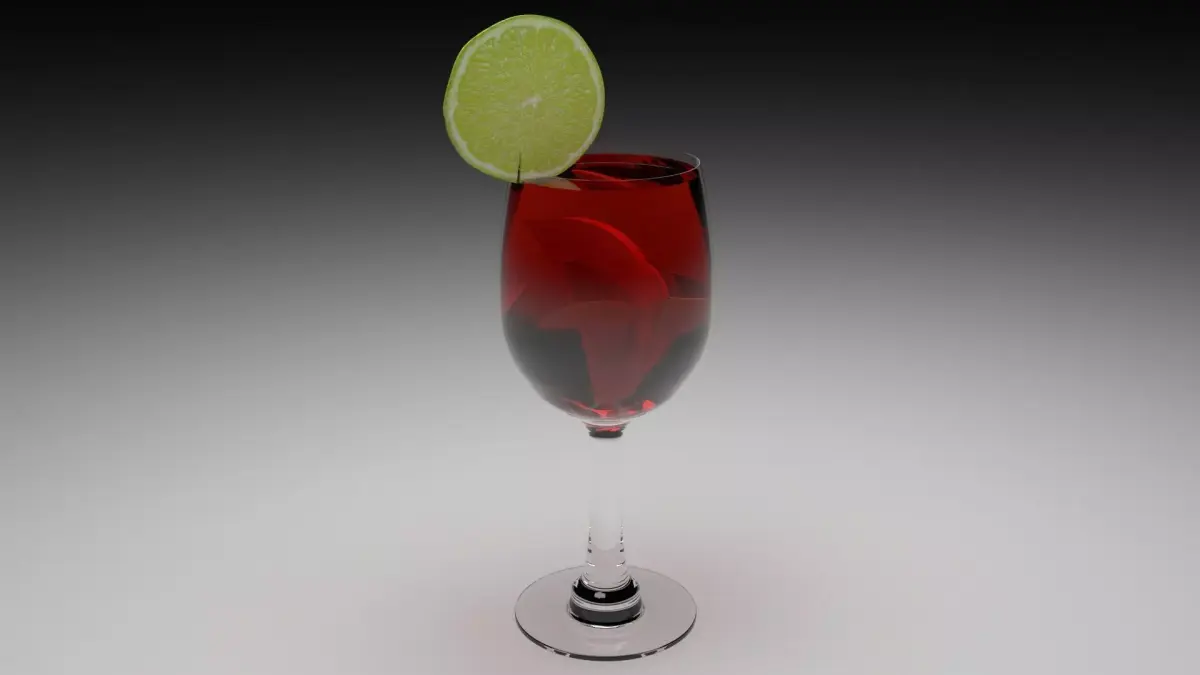 Exquisite Wine Detailing: The Glass of Sangria Wine is delicately modeled, featuring the rich color and enticing reflections of a poured red wine. The attention to detail in the liquid and the glass stem enhances the overall authenticity, creating a lifelike portrayal.