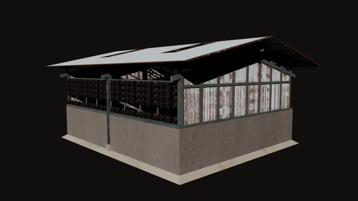 This is a high-quality, game-ready 3D model of an open hangar/warehouse, inspired by battle royale environments like PUBG. Designed for realistic FPS and survival games, this detailed structure includes 4K PBR textures, optimized geometry, and efficient UV mapping for seamless integration into game engines like Unity and Unreal Engine.