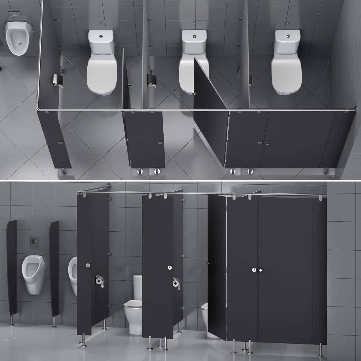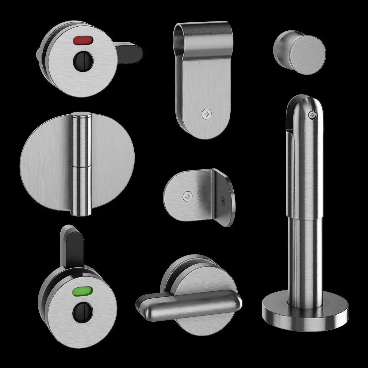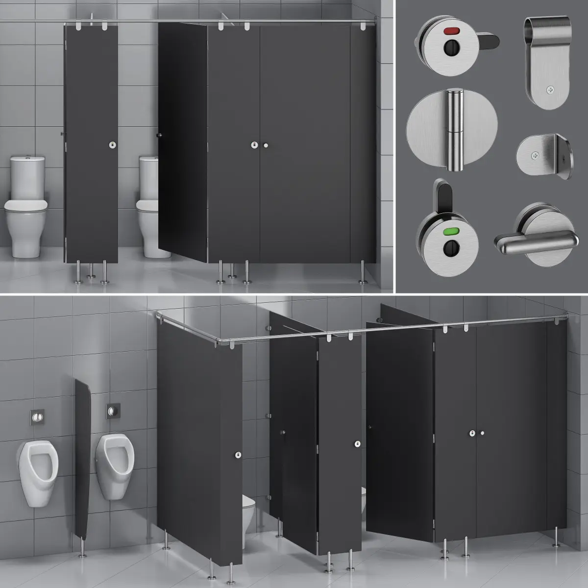 - Fittings NormbauFrom the components of the set, you can set any number of toilet cubicles in public toilets.