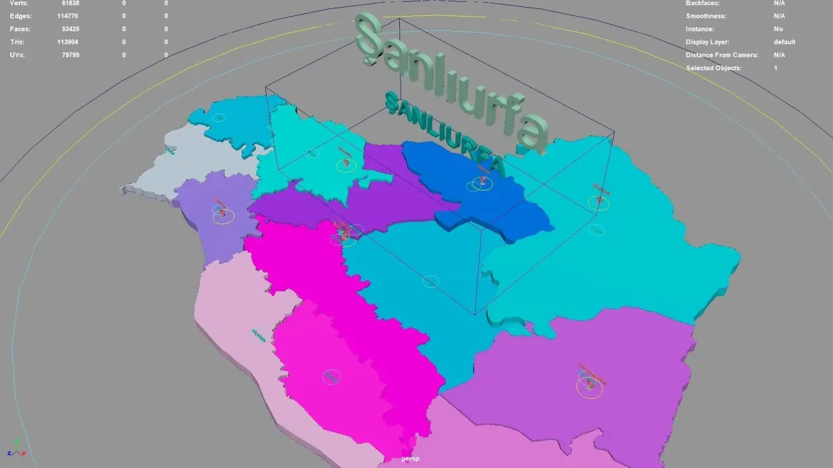 Şanlıurfa regions : The model is divided according to the administrative region of Şanlıurfa. Each region is clearly separated so you can easily isolate it or change the colors. Names are also editable and separate.