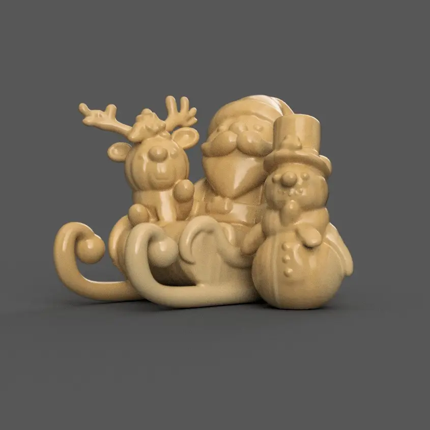 Santa and Deer Sleigh with Snowman – 3D Christmas DécorBring the joy of Christmas to your home with this 3D design of Santa and his sleigh, pulled by a deer, with a cheerful snowman. Perfect for decorating your table, shelf, or desk during the holidays. This festive piece is easy to 3D print and makes a great gift. Create a warm holiday feeling with this charming design!