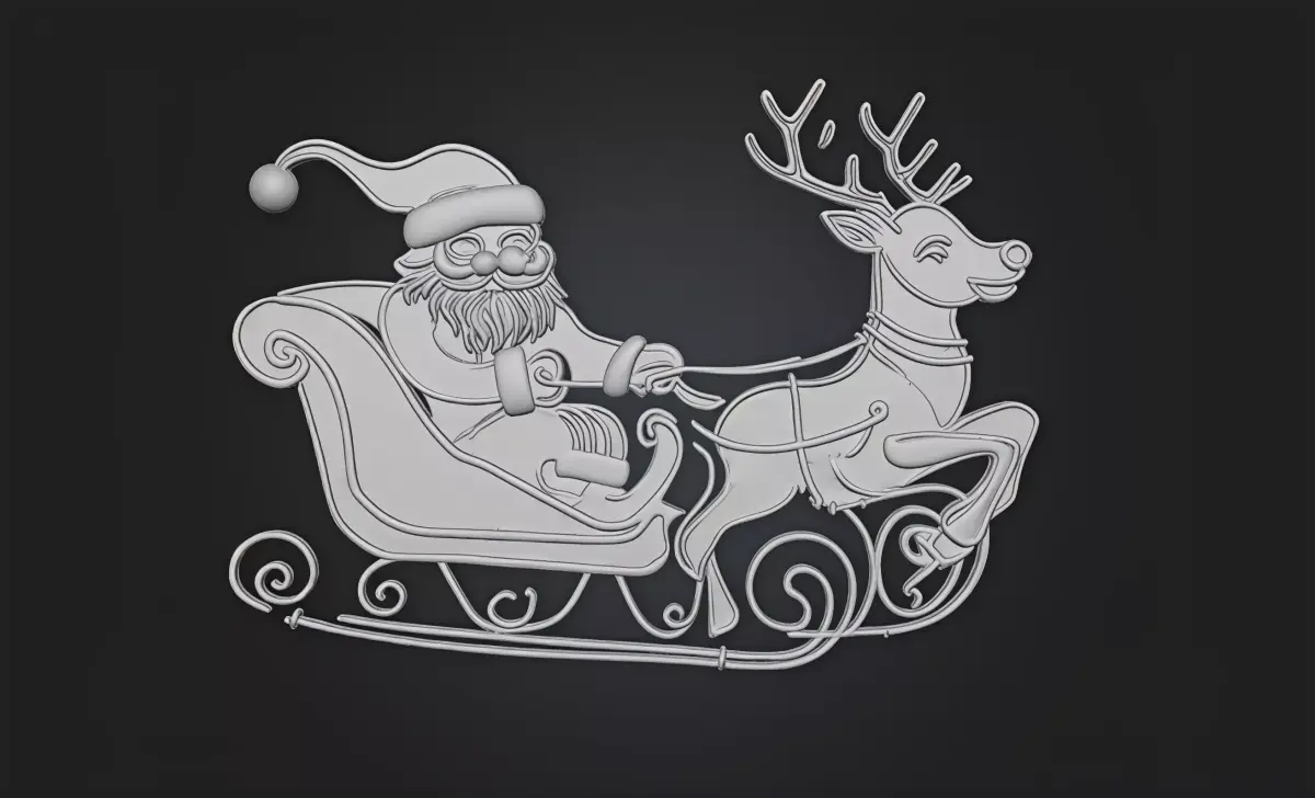 Bring the magic of Christmas to life with this vibrant 3D printable wall art featuring Santa Claus in his sleigh pulled by a leaping reindeer. Designed in a glowing neon style, this model adds a modern twist to classic holiday cheer.