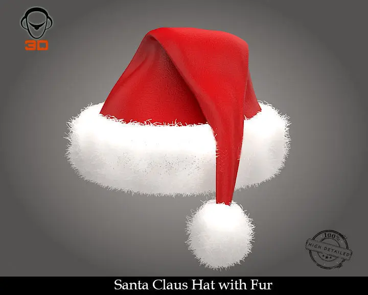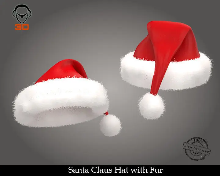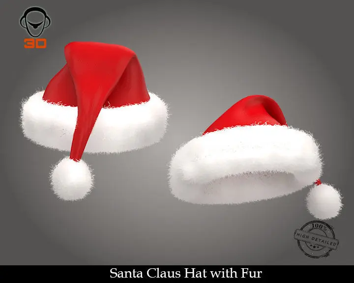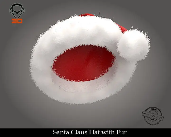 High resolution, realistic, fully detailed and textured Santa Claus Hat with Fur Detailed enough for close-up renders. Model comes with detailed textures. All parts are separate and pivoted for animation.