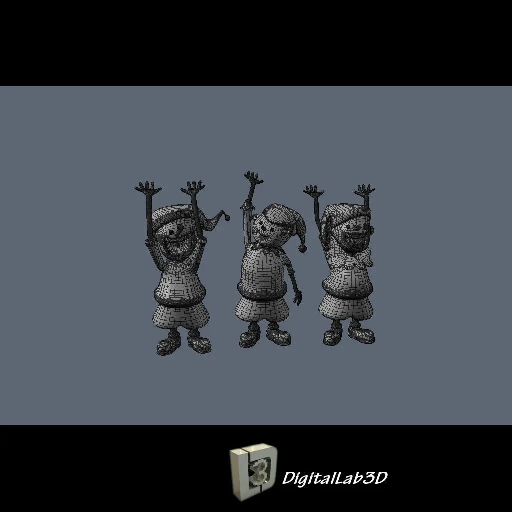 A 3d model collection of Santa claus and elves. Complete with material colors. Ready for 3d presentation/animation.