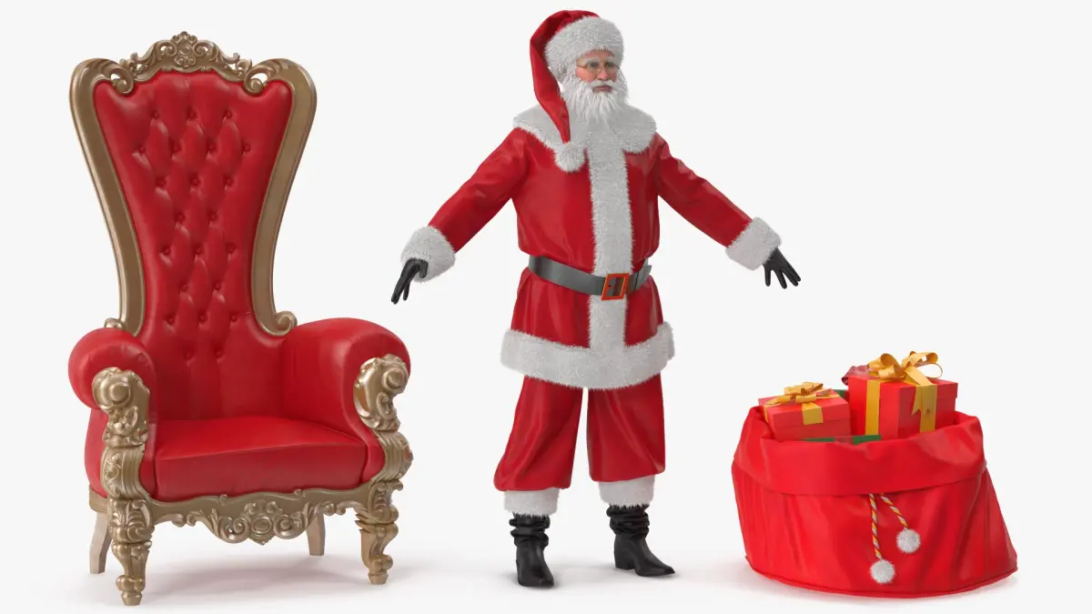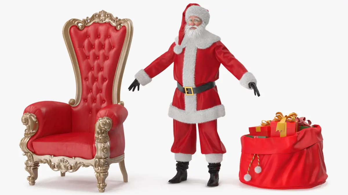 Santa Claus with Open Bag and a Throne Chair