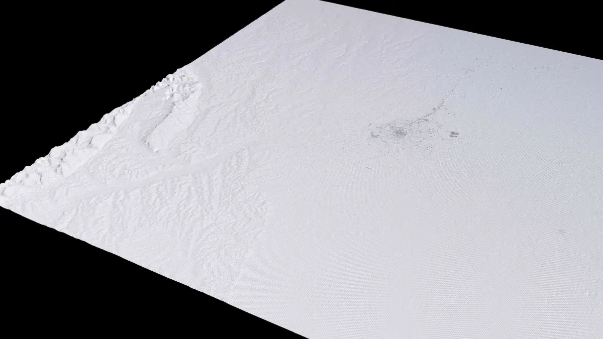 Originally created in Houdini 19. Final images rendered in Houdini. Data source is ASTER GDEM V3, ASTER WATER V1, Open Streep Maps 2022, Copernicus Sentinel 2016.