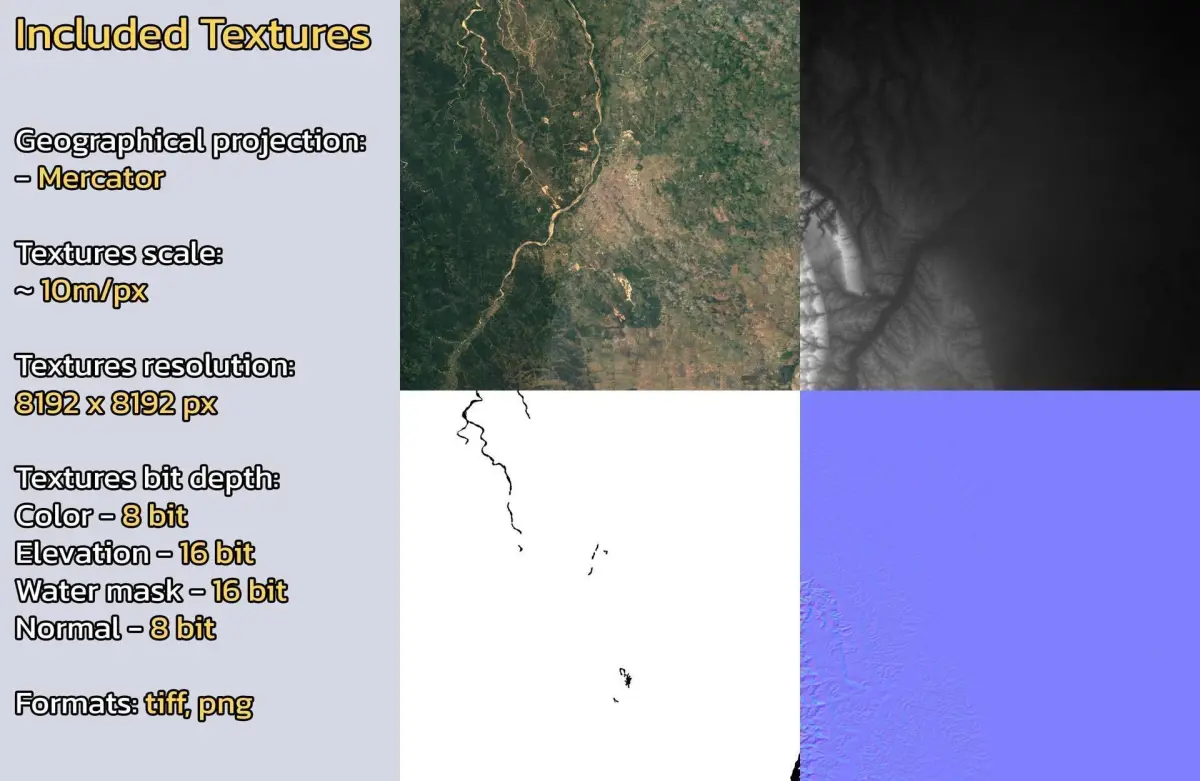 - Textures resolution: ~10m/px