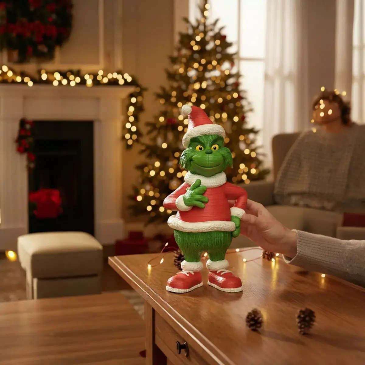 A figurine of the Grinch dressed as Santa Claus to be part of your Christmas decorations.