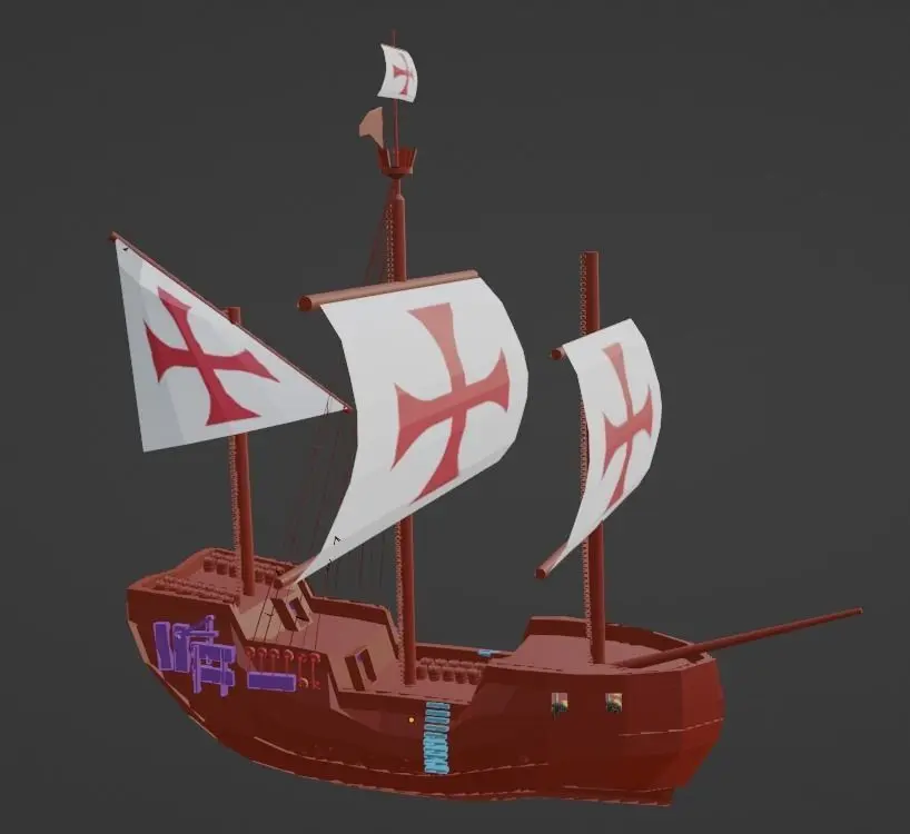 The Historic Santa Maria Carrack , was built on the hull of the Nao as most Santa Maria Carracks had sails on their foresale i didn't include to make it even more rare , one of the first ships to have cannons in portholes and i literally put them on the forward station as not all were the same , the Iconic flagship of Christopher Columbus, it's journey with him ends in the iconic city of Haiti , were the ships' remnant wood were salvaged and reused to form an establishment.