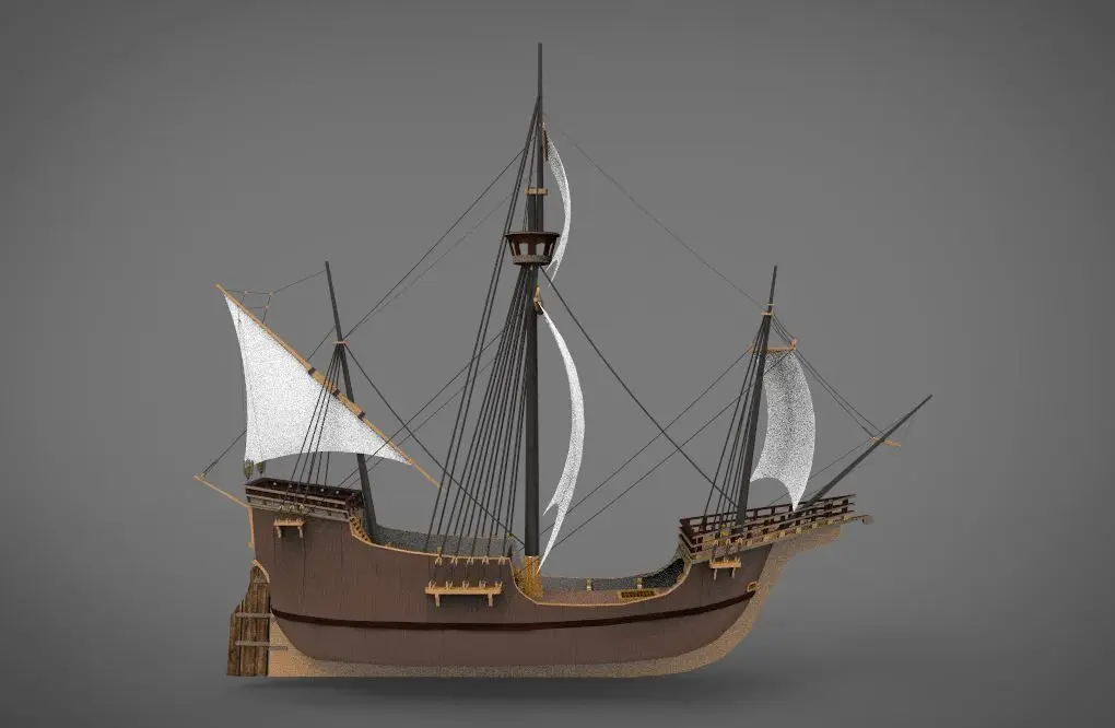 The 3D model of the Santa Maria is a captivating and historically significant representation of Christopher Columbus's flagship during his 1492 voyage to the New World. This model meticulously replicates the details of the late 15th-century carrack, from its robust wooden hull and high castles to the intricate rigging and square sails. Enthusiasts and educators alike value the Santa Maria 3D model for its accuracy and the opportunity it provides to explore the vessel that played a crucial role in one of the most famous maritime expeditions in history. The digital recreation serves as both an educational tool and a testament to the age of exploration, making it an essential piece for those interested in maritime history and ship modeling.