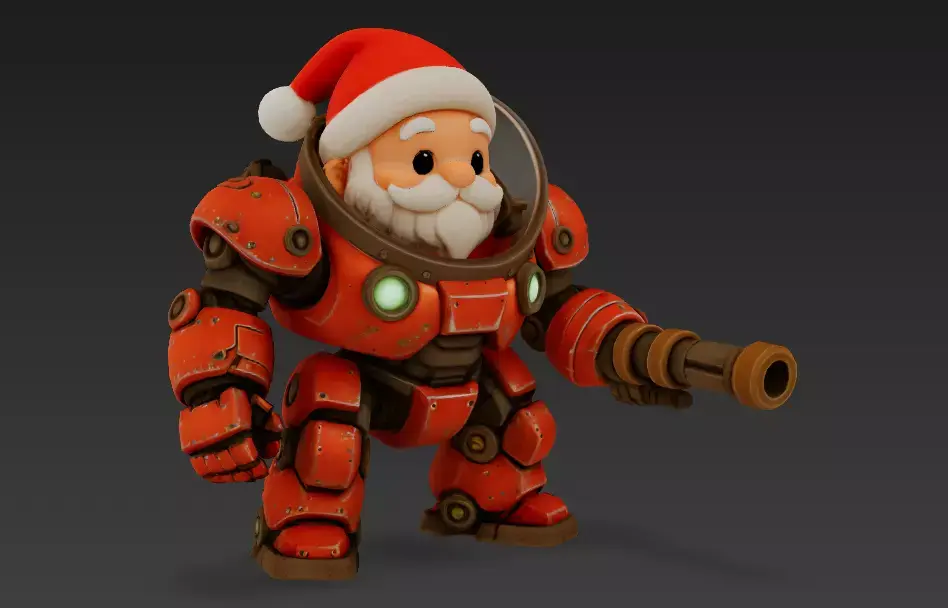 Bring futuristic holiday vibes to your project with Santa Mech Pilot, a cute and powerful sci-fi inspired Christmas character. This stylized 3D model features Santa Claus piloting a heavy mech suit with armored plating, glowing reactor details, and a playful yet heroic design.