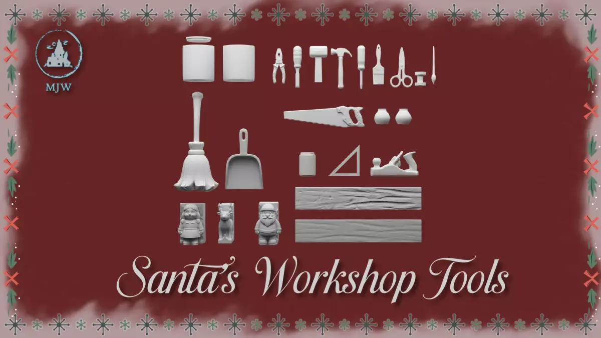 Bring Santa’s cozy workshop into your miniature scenes with this full set of handcrafted tools and accessories. Perfect for Christmas dioramas, dollhouses, stop-motion sets, tabletop displays, and hobby rooms.