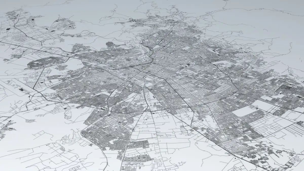 - this model is based on real data therefore this is a realistic road network and streets setup of Santiago, Chile- this are covers Santiago, San Bernardo, Puente Alto, Las Condes and some minor areas in this territory- 2 objects included | 1. roads and streets 2. squares and plazas- UV mapped with overlapping UVs- the model is positioned on a flat surface (road network is on the “floor” - no elevation data included)- geometry is polygonal quads and tris- model is untextured and renders fast- this 3D model is/can be licensed (commercial use is fine) under Creative Commons Attribution-ShareALike 2.0 (CC-BY-SA) license- buildings and streets data from OpenStreetMap / www.openstreetmap.org