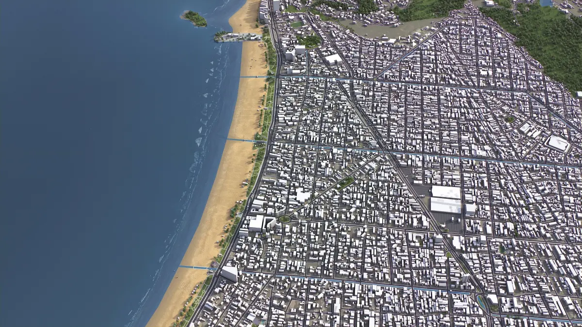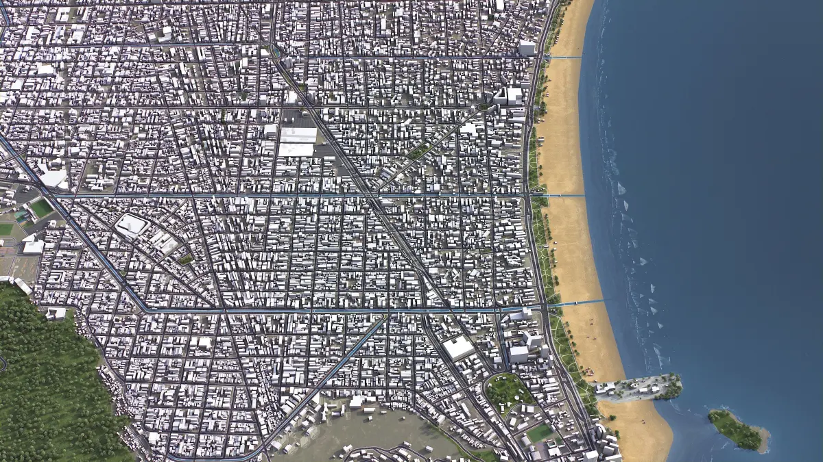 - Full city extents up to 100 x 100 km — or crop to an area of interest for better format compability and scene performance