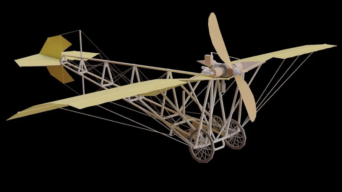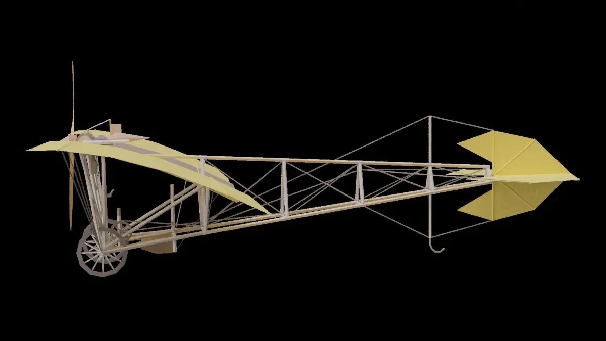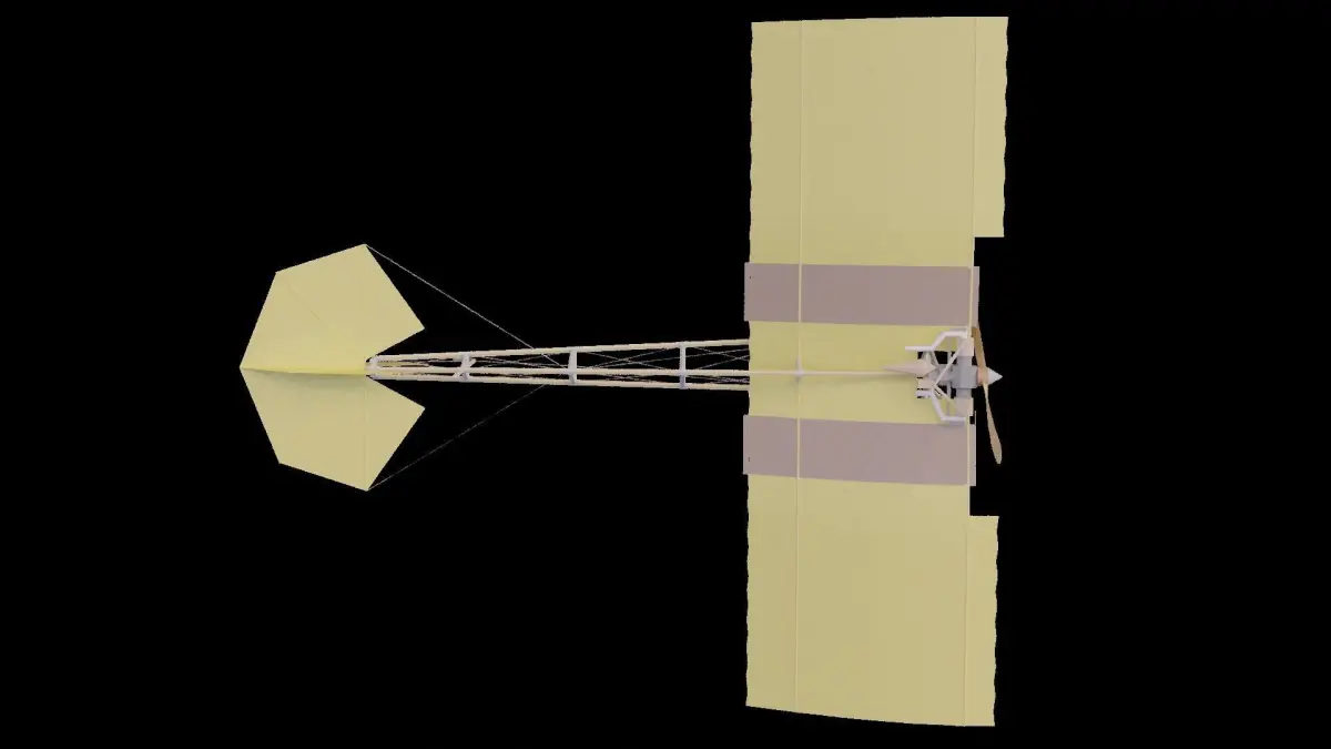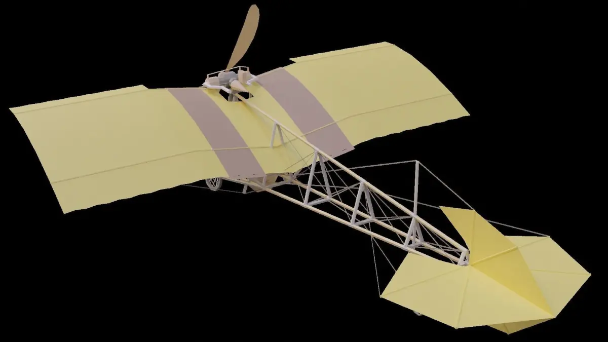 Santos-Dumont No. 19, which was built to attempt to win the Grand Prix d'Aviation offered for a one kilometre closed-circuit flight. Powered by a 15 kW (20 hp) air-cooled Dutheil & Chalmers flat-twin engine mounted on the leading edge of the wing, it had a wingspan of 5.1 m. (16 ft 9 in), was 8 m (26 ft 3 in) long and weighed only 56 kg (123 lb) including fuel. It had a pair of hexagonal rudders below the wing on either side of the pilot, a forward mounted hexagonal elevator in front of the pilot and a cruciform tail which, like the boxkite-style canard surfaces on the earlier 14-bis biplane of 1906, pivoted on a universal joint to function both as elevator and rudder mounted at the end of a substantial single boom. There was no provision for lateral control. The undercarriage consisted of a pair of wheels in front of the pilot and a third behind, supplemented by a tailskid.