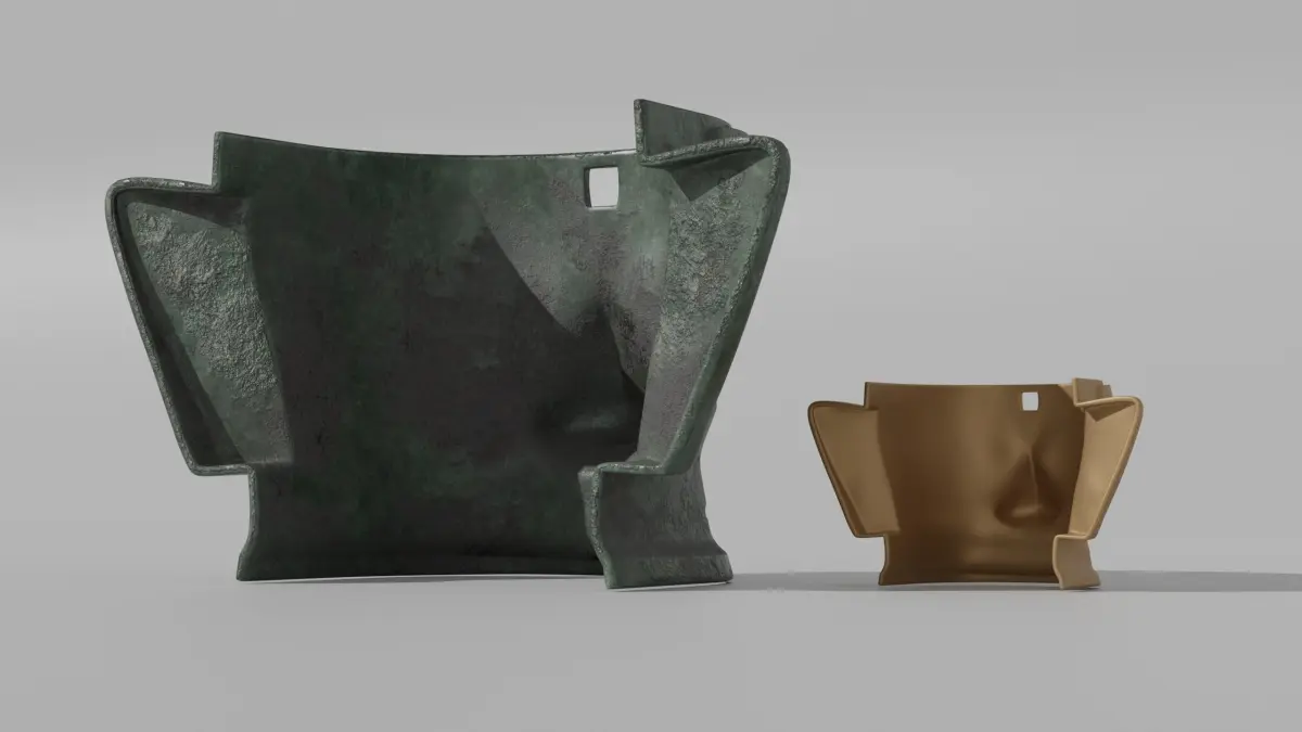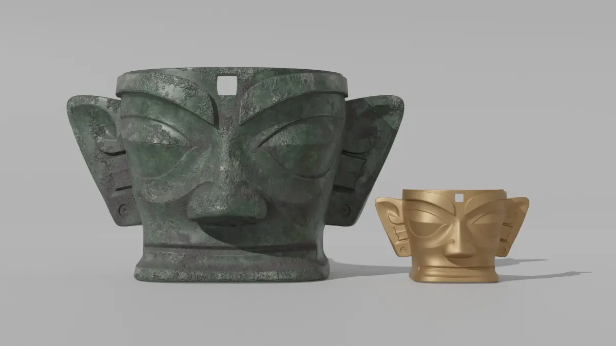 Sanxingdui Bronze Mask, modeled in Blender with detailed accuracy, rendered in Cycles, 4K textures painted in Substance Painter, exported in FBX universal format.