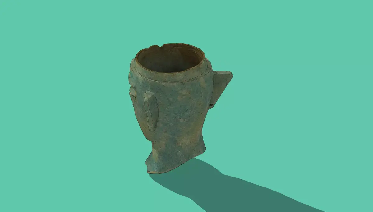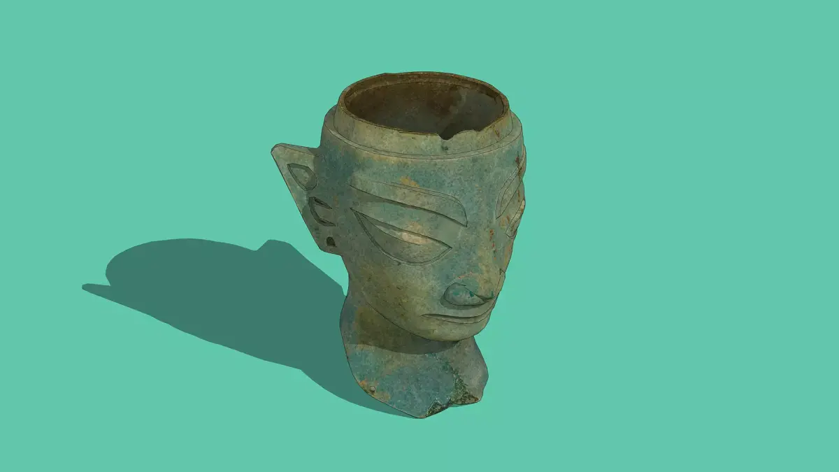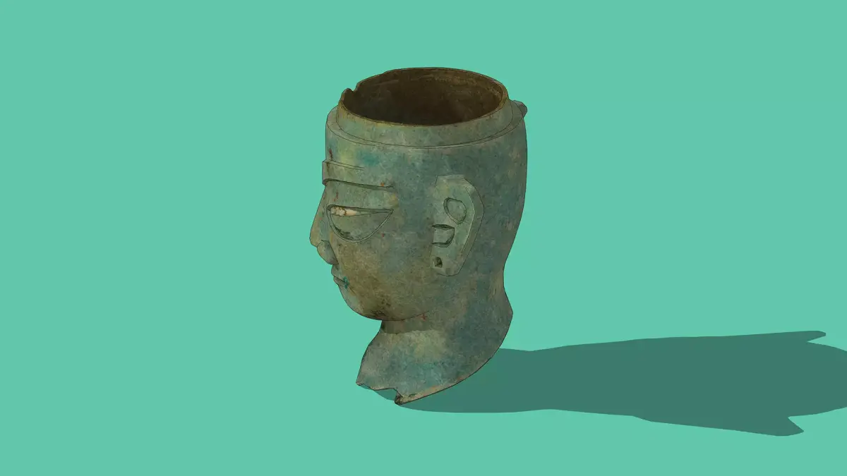 This 3D low-poly model recreates a bronze mask from the Sanxingdui archaeological site, a pivotal Bronze Age civilization in ancient Sichuan, China. The digital representation captures the mask’s iconic features: oversized, almond-shaped eyes, a solemn expression, and textured patina suggesting age and ritual significance. Its simplified polygonal structure balances historical accuracy with real-time rendering efficiency, ideal for virtual exhibitions or interactive cultural applications.