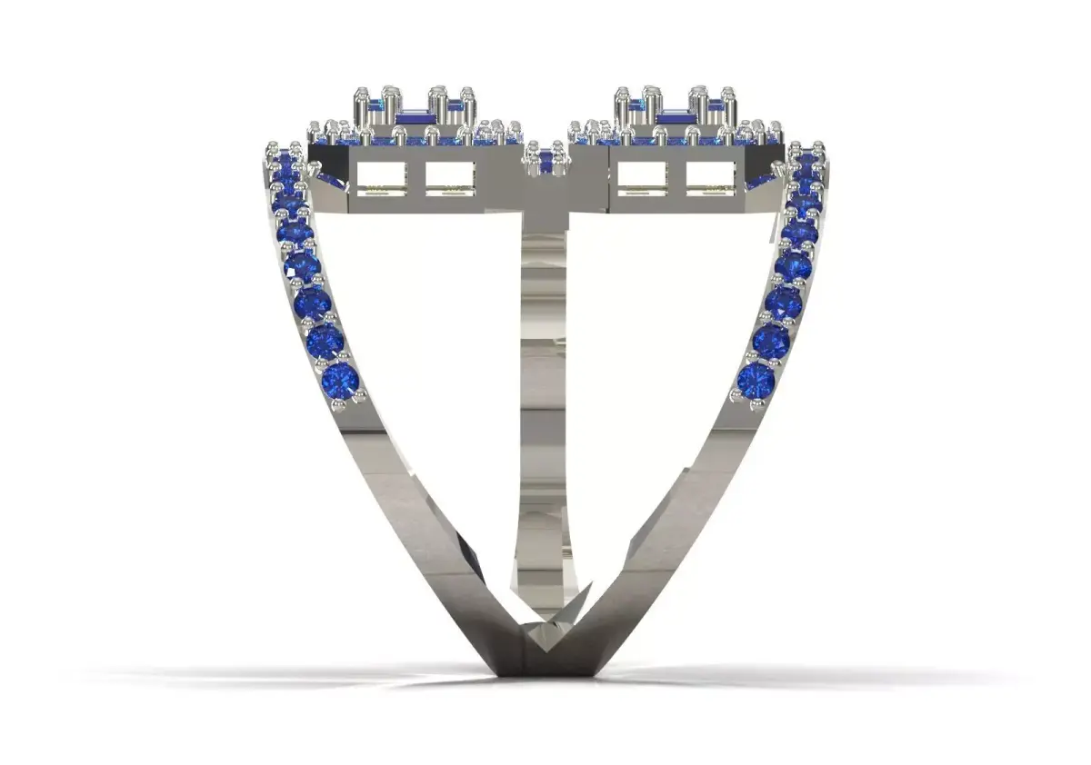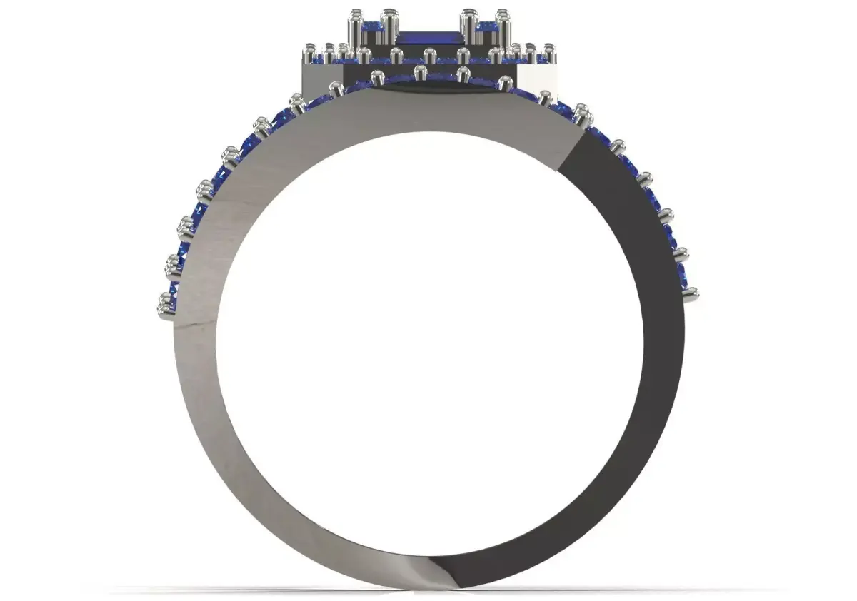 - Outer Halo: Consists of Round Blue Sapphires that emphasize the brilliance of the blue color.