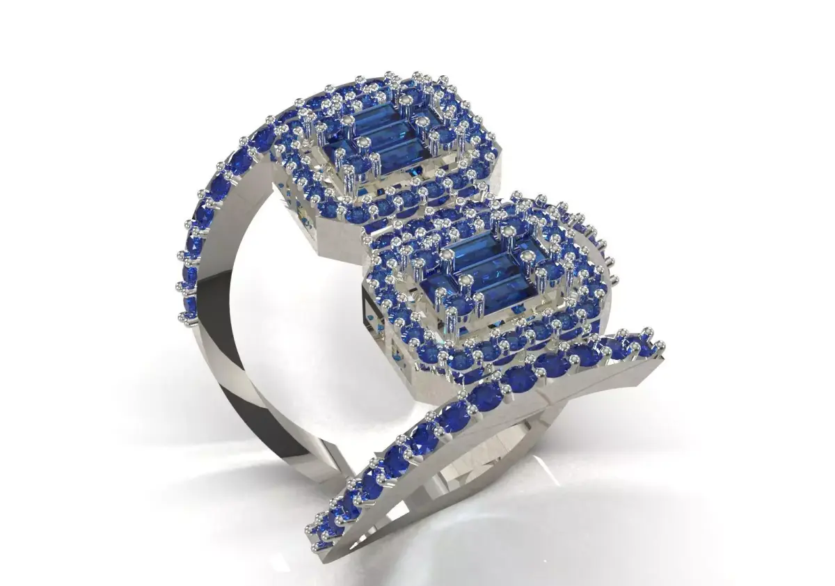 - Material: This ring appears to be made of White Gold or Platinum, which creates a beautiful contrast with the blue gems.