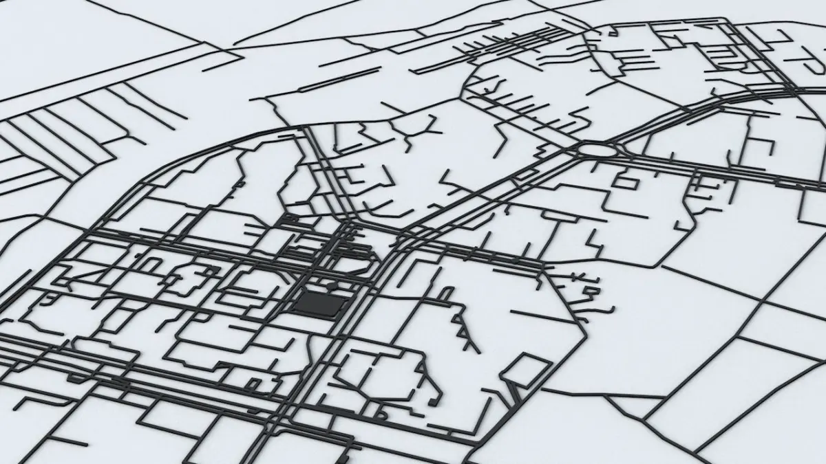 - the model is positioned on a flat surface (road network is on the “floor” - no elevation data included)