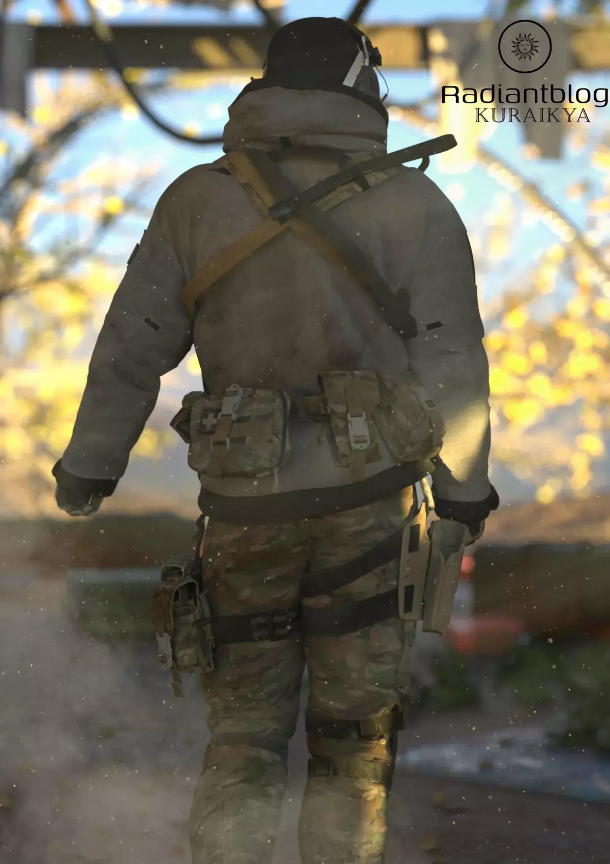 Full Tactical Loadout: Holster, Strap, Kneepads, and various Pouches.