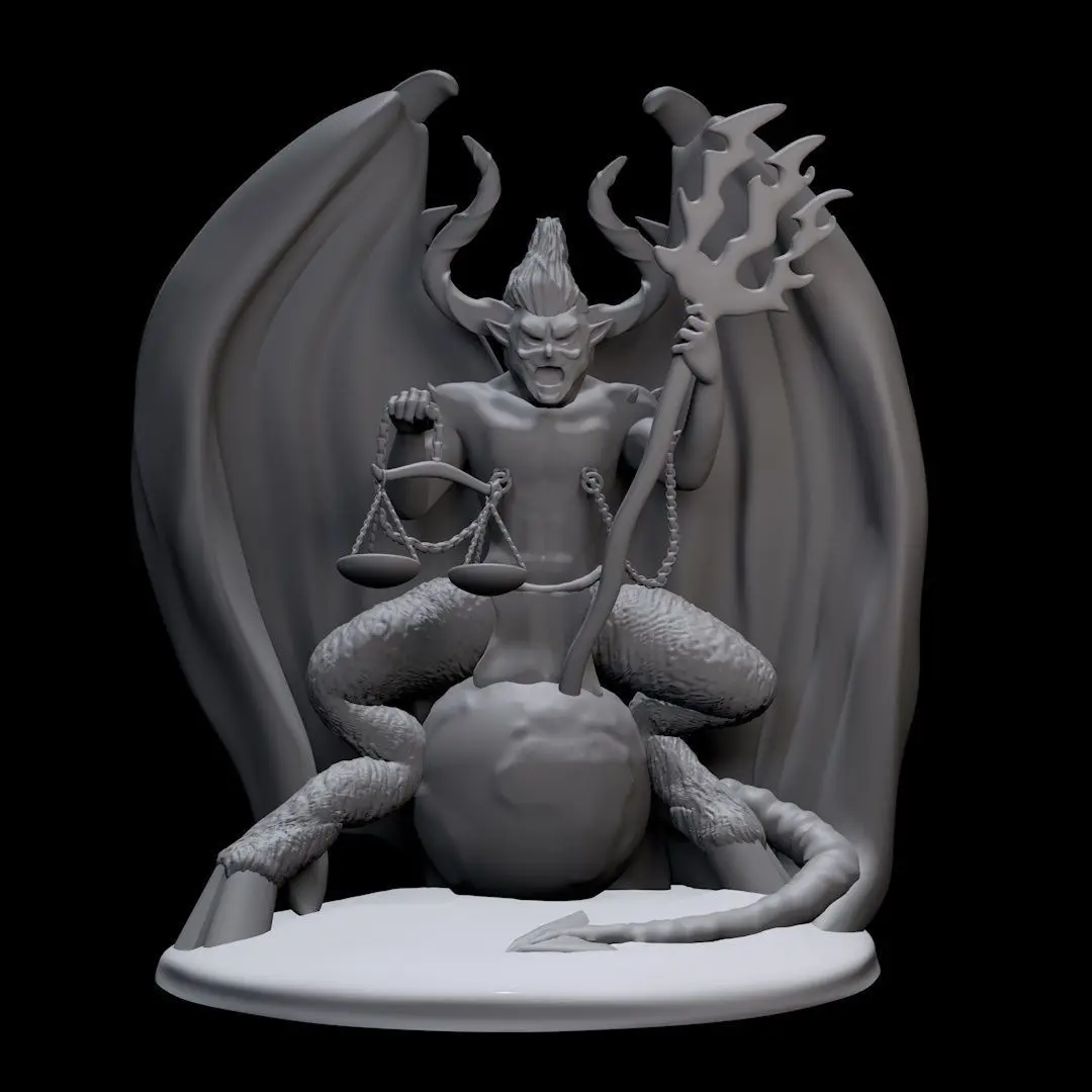This striking 3D model encapsulates the formidable presence of Satan, adorned with a trident in one hand and a scale in the other, as he reigns supreme atop the world. Crafted with meticulous detail and imbued with symbolism, the statue evokes a sense of divine rebellion and cosmic authority, inviting contemplation and awe.
