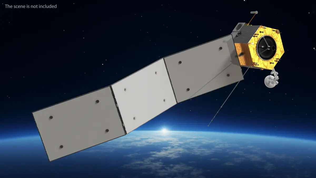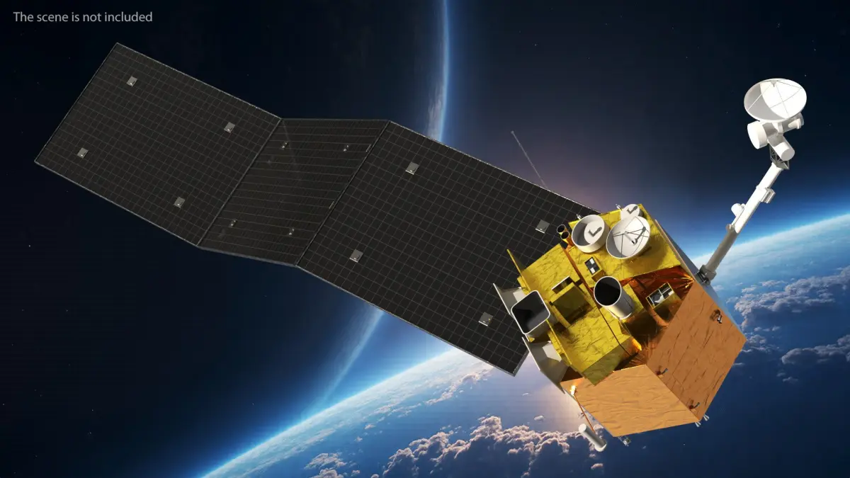 The model showcases a detailed satellite featuring solar panels, communication antennas, and a robust structure suitable for orbital operations. Created with precision, it emphasizes the technological components essential for efficient data transmission and earth observation.