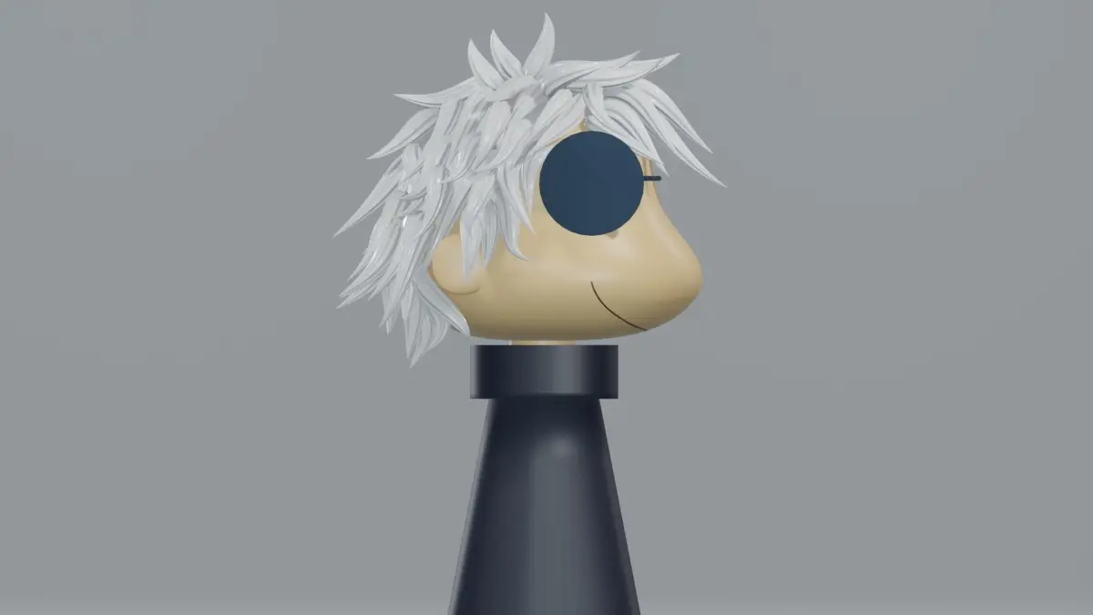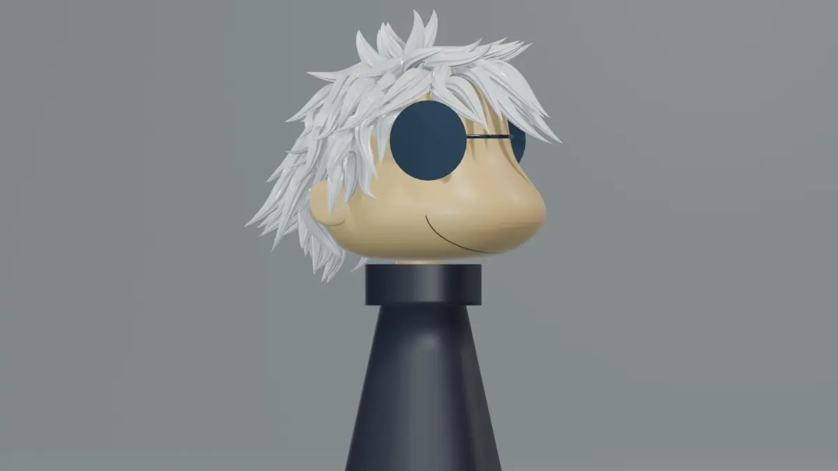 Satoru Gojo from Jujutsu Kaisen in the Chibi artstyle but 3d.This model includes 8 mesh objects, 2 light sources, a camera, 5 materials and a texture image.The mesh objects are named as follows:-BG-Gojo_Body-Gojo_Ears-Gojo_Glasses-Gojo_Glasses_Frame-Gojo_Hair-Gojo_Head-Gojo_NeckThe materials are named as follows:-BG_Mat-Gojo_Body_Mat-Gojo_Glasses_Mat-Gojo_Hair_Mat-Gojo_Head_Mat