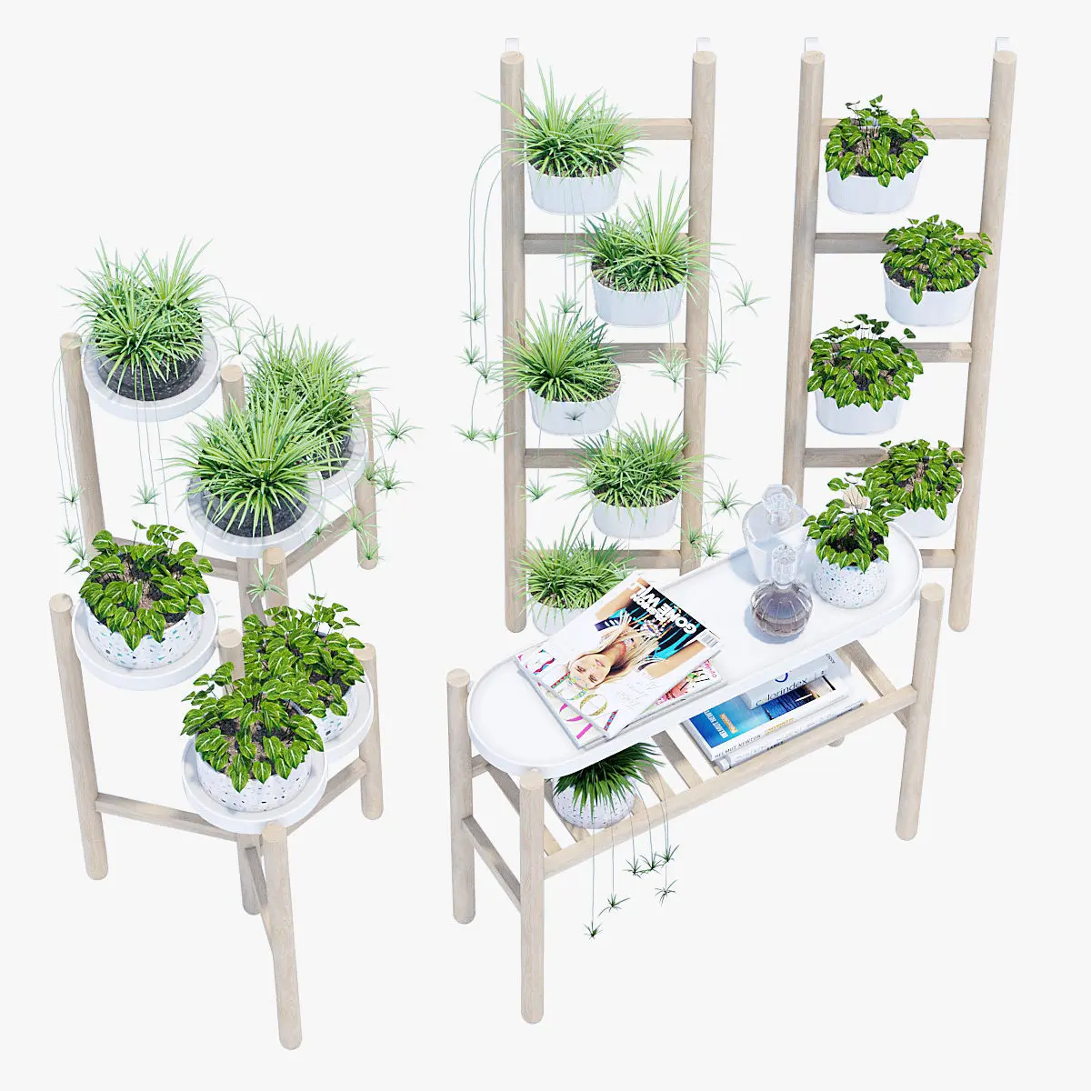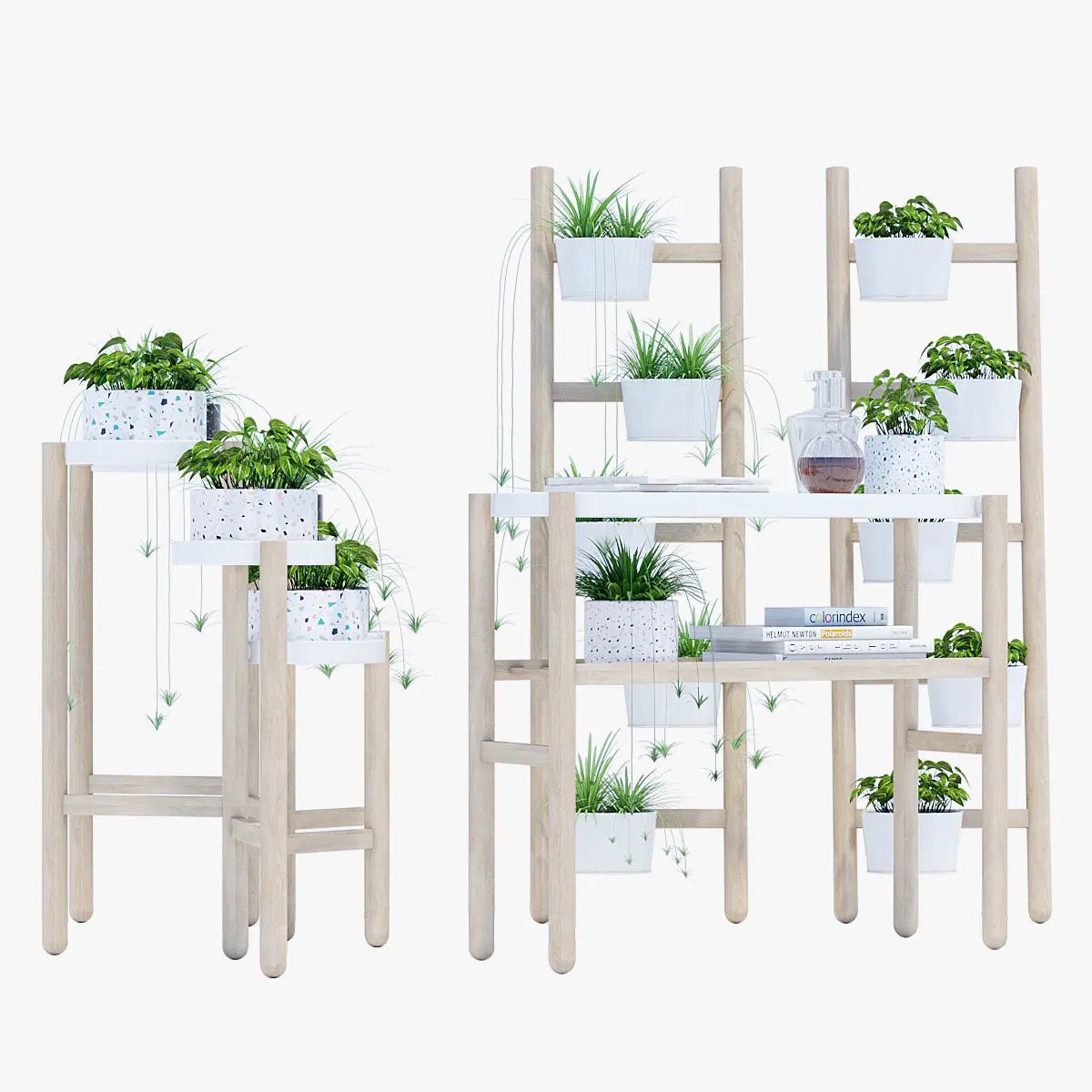 Plant stand with 5 plant pots, bamboo, white$39.99Article Number: 102.581.55Product dimensionsMax. load/small plant pot: 3 kgWidth: 36 cmHeight: 125 cmDiameter of plant pot: 12 cmDesigner:Johanna Asshoff