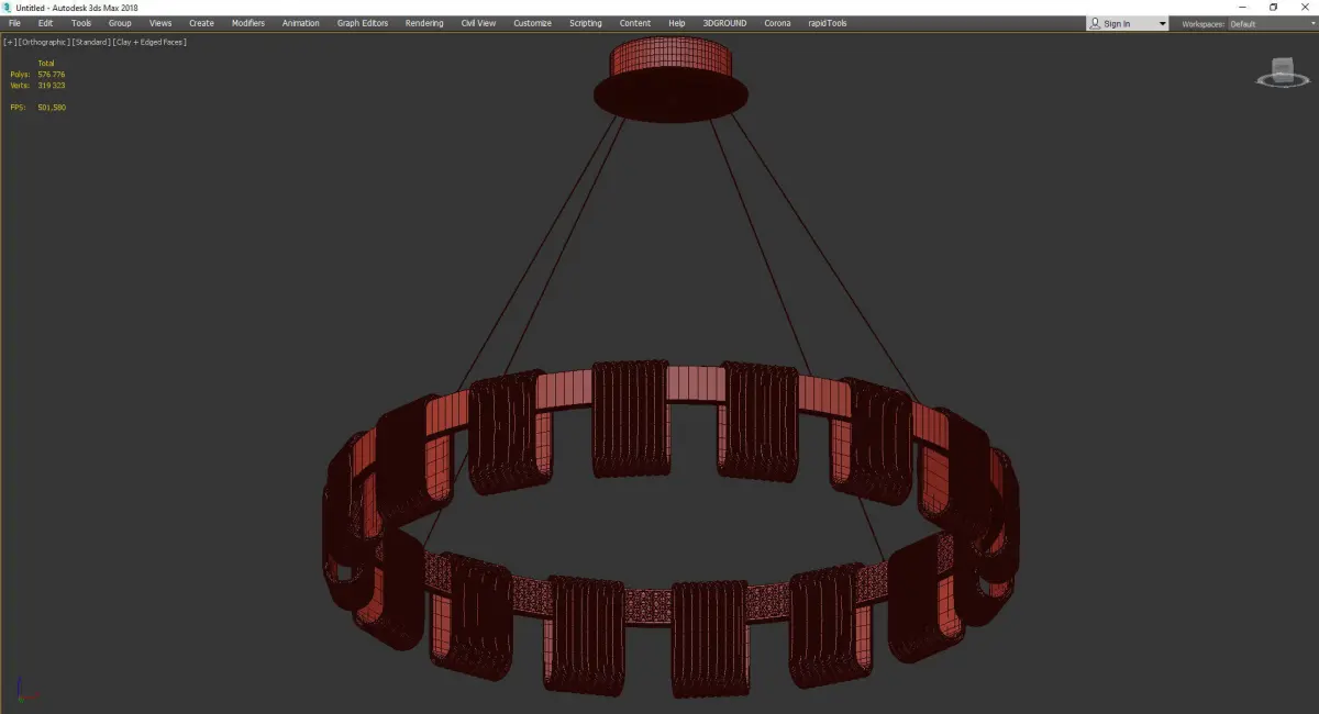 Name:Saturno LED ChandelierVersion: 2015Units: MillimetersDimension: 990.72 x 990.72 x 803.52Polys: 89 900...turbosmoth 1 iteration _ 199 832Model Parts:1Render: Corona+VrayFormats: 3Ds Max 2015, OBJ, FBX