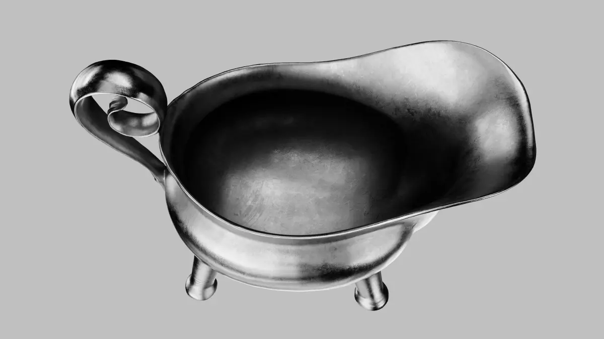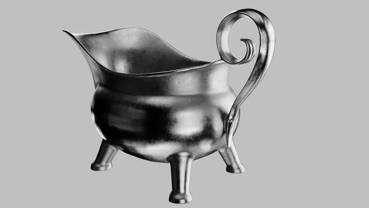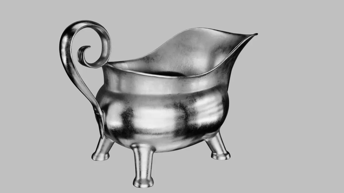 - Perfect for Interior Visualization: This pewter sauce boat/creamer is an ideal decorative element for interior design projects. It's perfect for adding a touch of classic charm and realism to dining room scenes, kitchen visualizations, or any space that could benefit from a meticulously crafted tableware piece. Also, it could serve as a creamer.