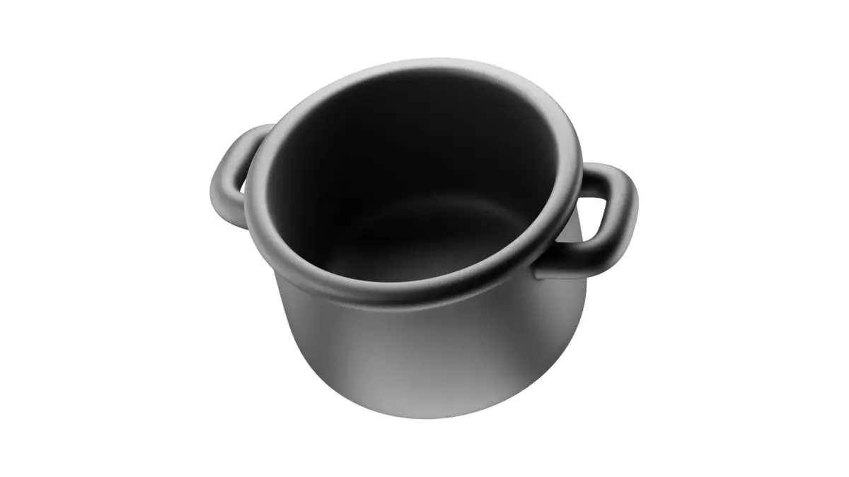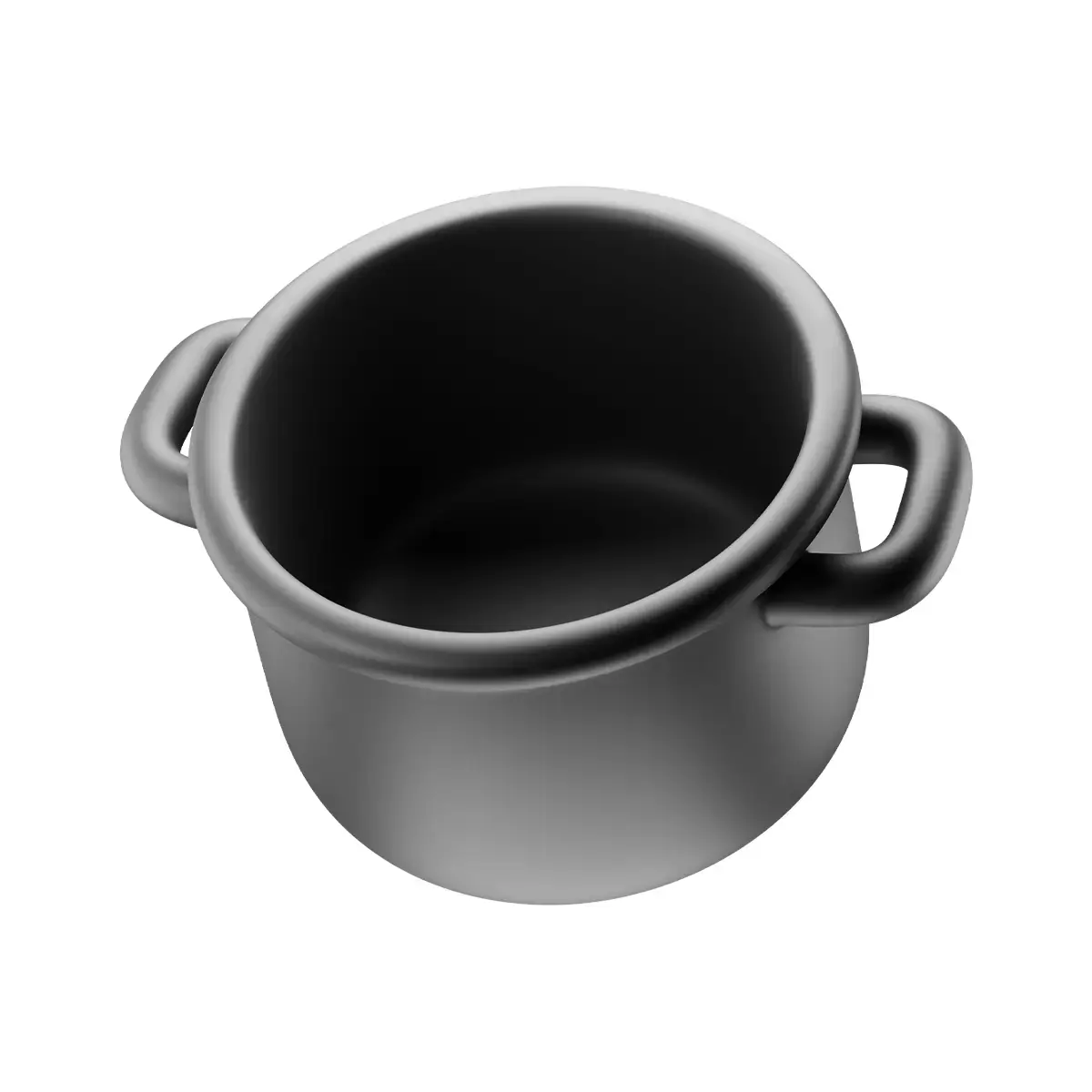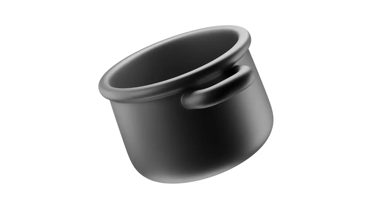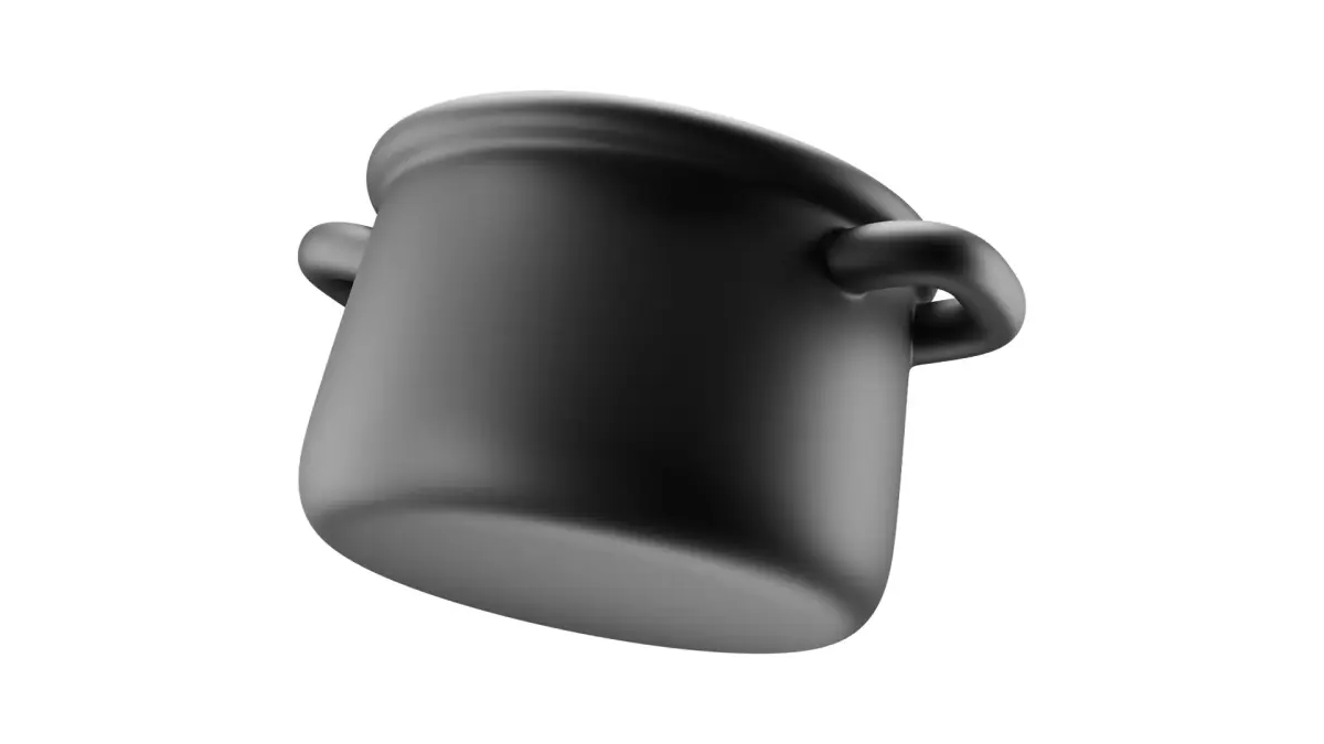 Minimalist 3D saucepan icon in a clean, matte black finish. Designed in a cartoon-style aesthetic for kitchen, cooking, and household-themed projects. Suitable for 3D icons, branding, and motion graphics.