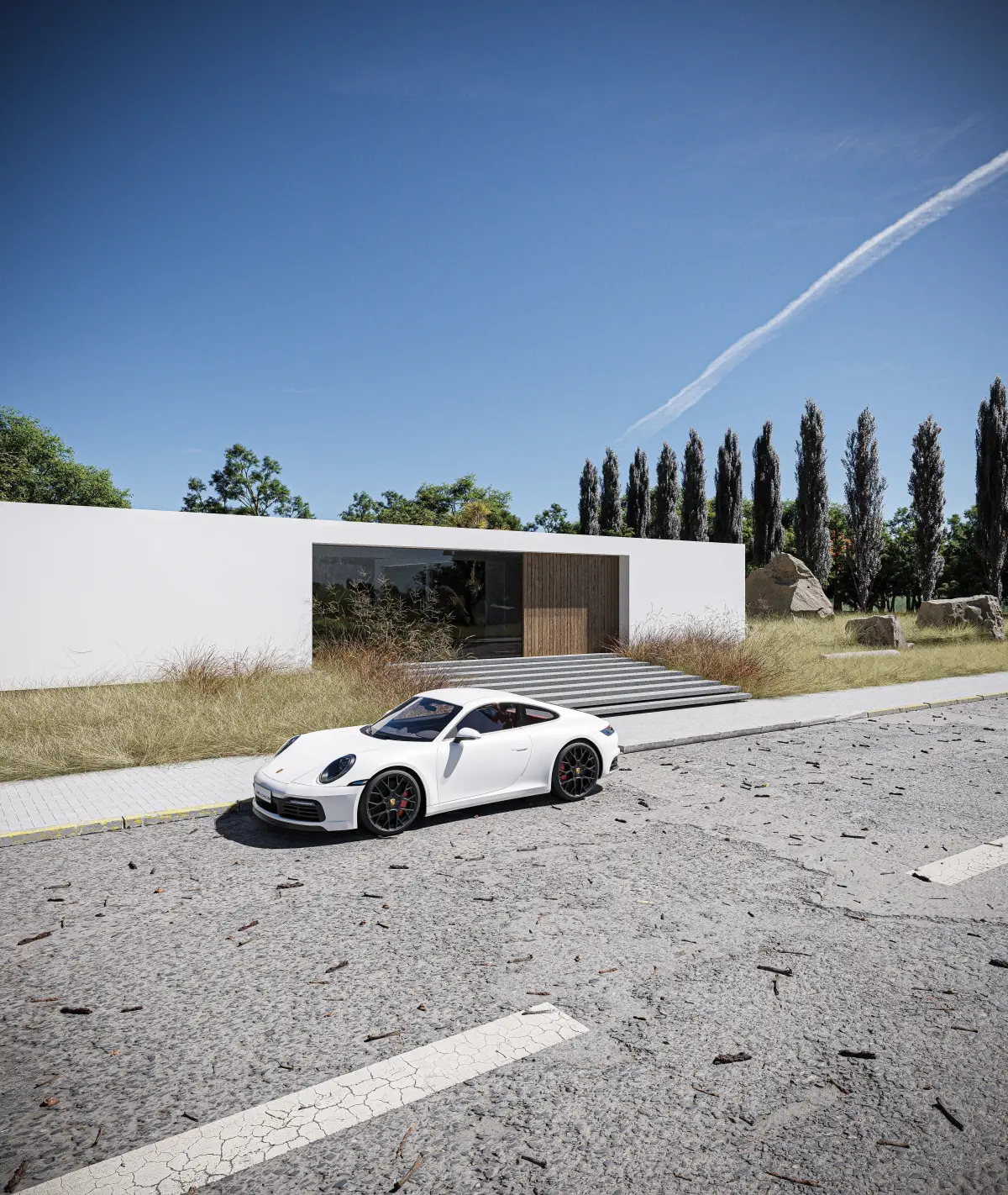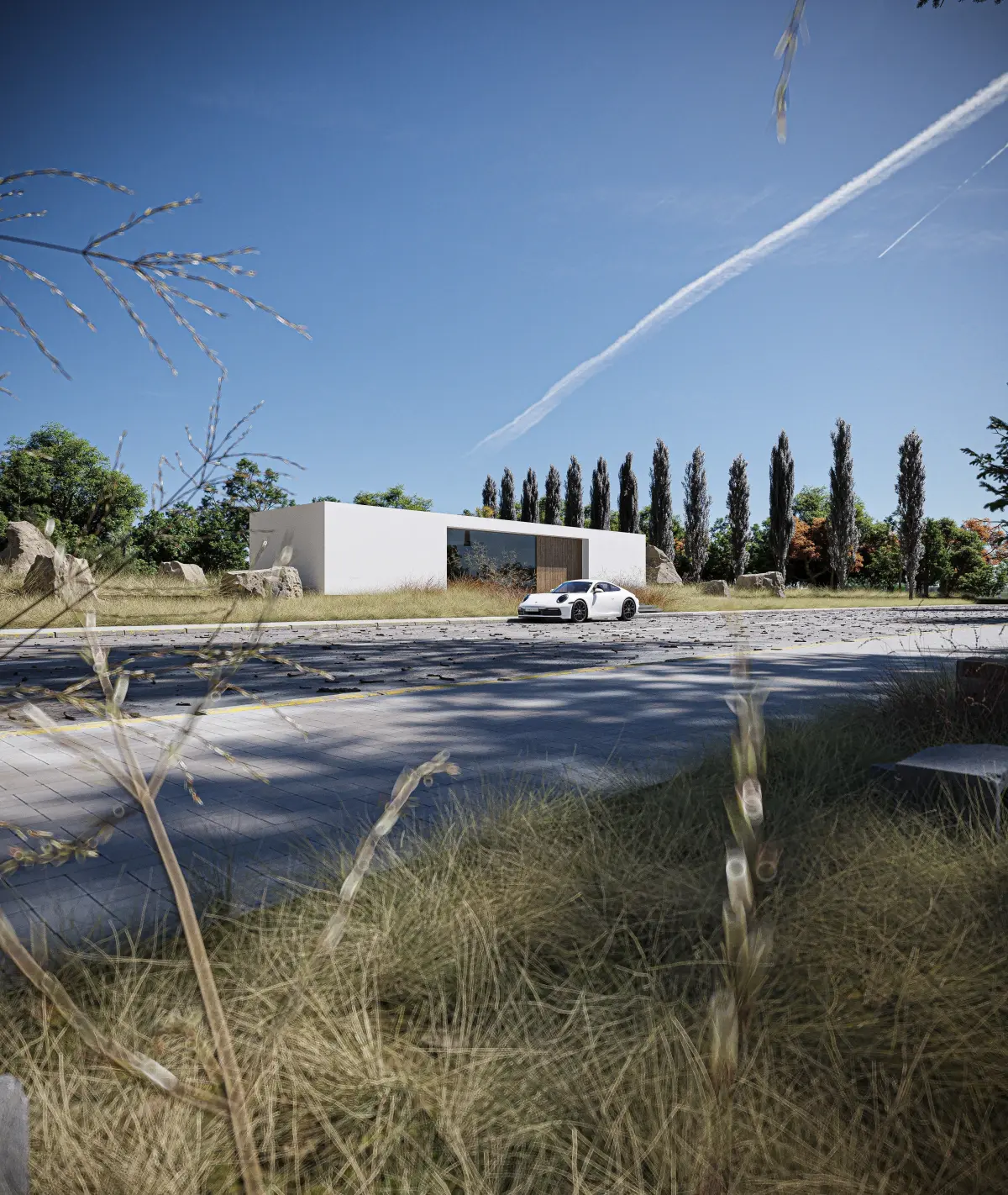 Exterior scene with multiple cameras. This scene has been repacked for 3ds max 2020 and Corona 9.All materials and assets are added. There are animation layers on cam 1.Chaos scatter was used.The scene is clean from viruses.