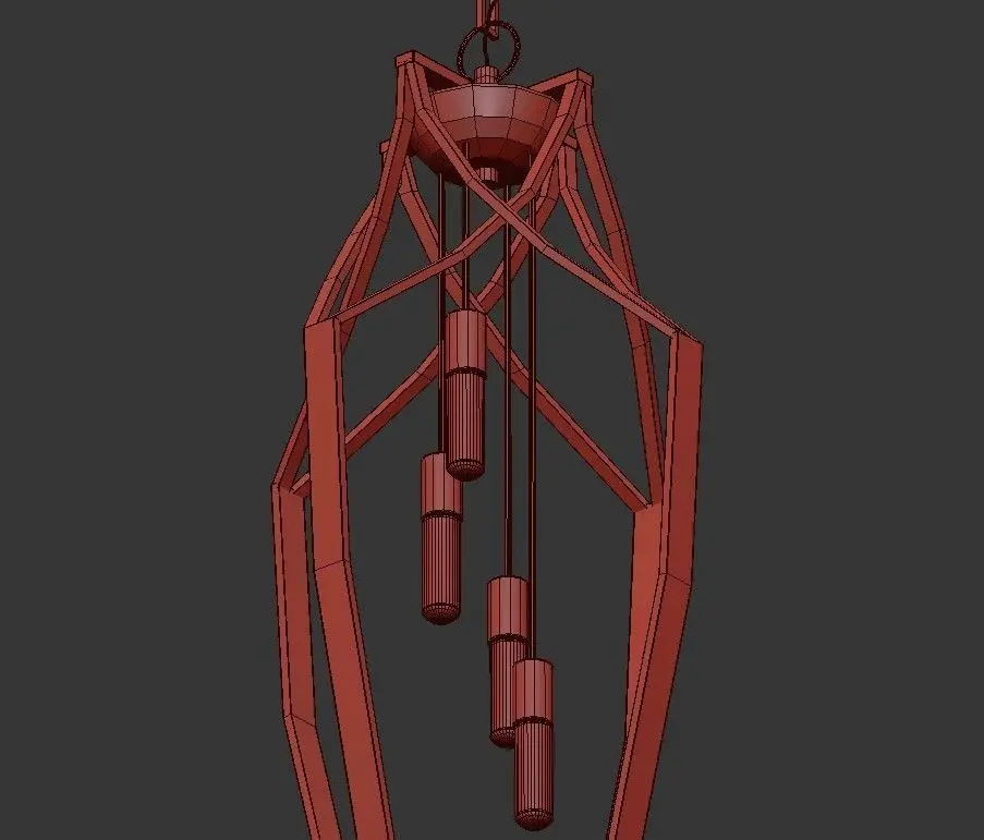 This beautiful English Bronze foyer light is a stylish and perfectly balanced linear design. Four lights hang down from bronze metal rods inside an openwork design abstracted vase shape. Hangs from the ceiling canopy with a complementary square-link chain. A fabulous contemporary transitional design by Savoy House.