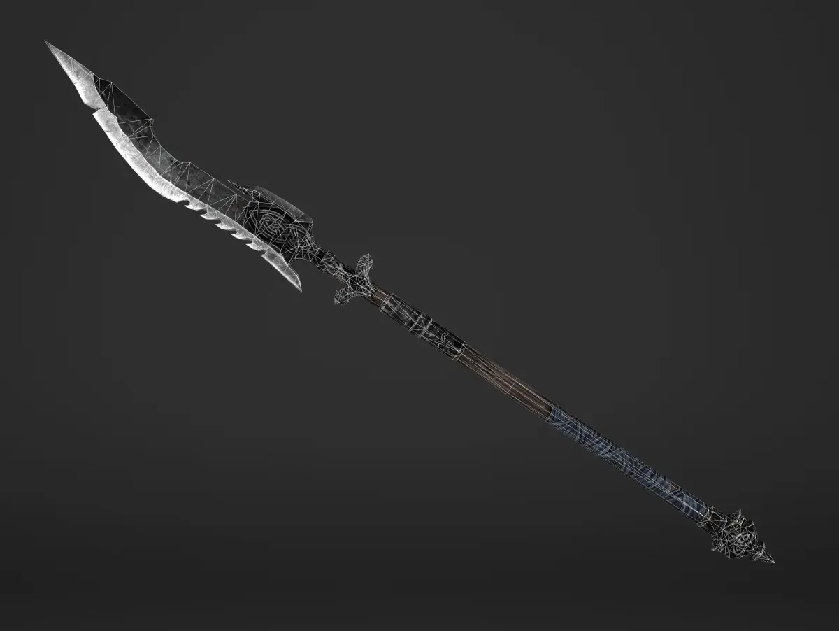 This is a model of a saw spear with wooden handle and wrapped with blue cloth. This model has PBR maps and is low-poly ready for game production.Maps: